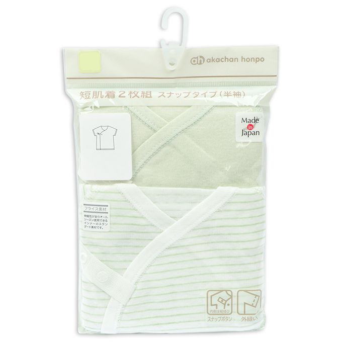 akachan honpo - 短袖肚衣2件組-按扣款鑽石-綠色 (50cm)