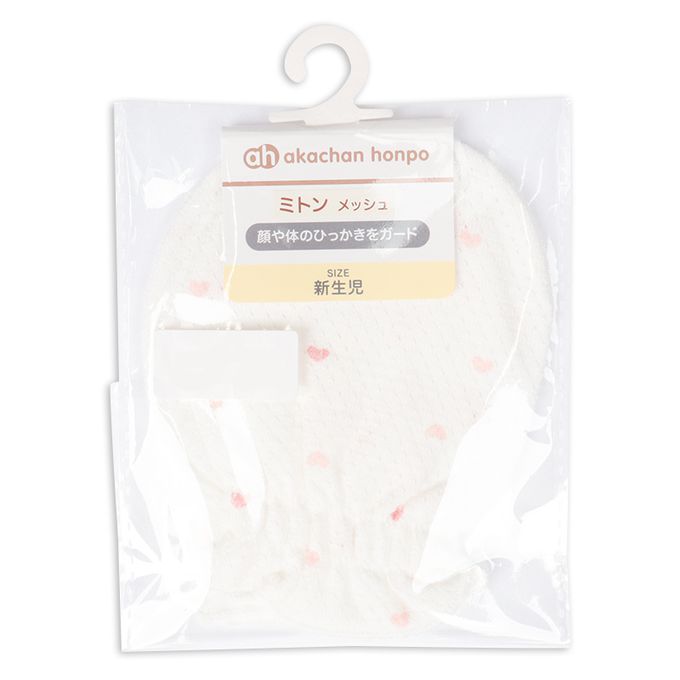 akachan honpo - 新生兒網眼手套-愛心-粉紅色 (50cm)