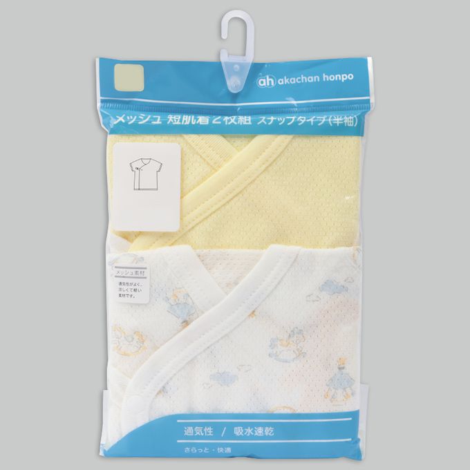akachan honpo - 短袖網眼肚衣2件組按扣款-木馬-黃色 (60cm)