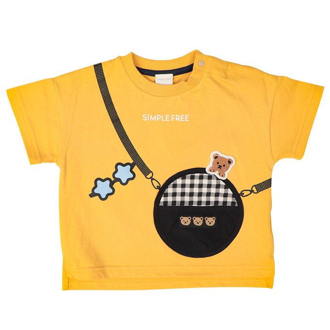 akachan honpo - 短袖趣味T恤-鱷魚-黃色