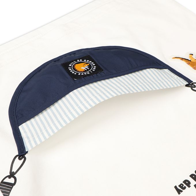材質:本體:棉59%聚酯纖維41%羅紋部分:棉57%聚酯纖維38%聚胺基甲酸酯5%包包部分:聚酯纖維100%包包滿版印花部分:棉100%