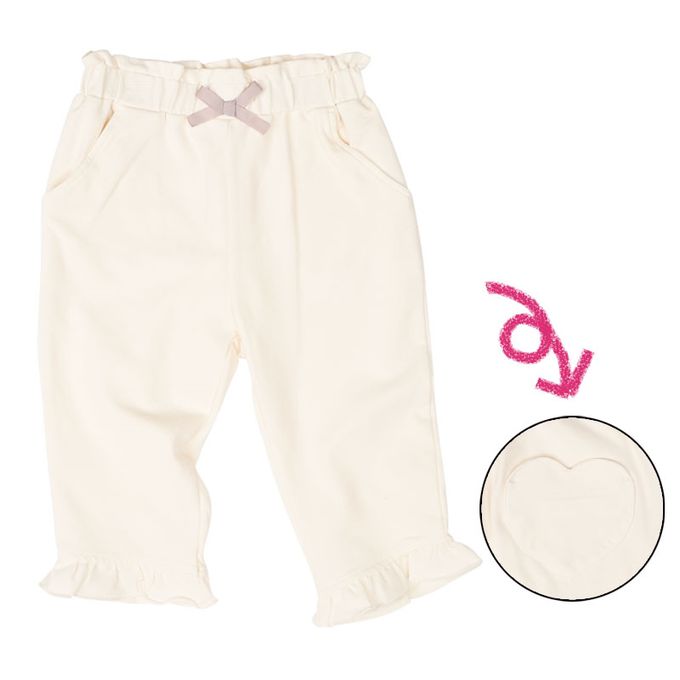 背面的愛心口袋和褲腳荷葉邊等低調設計