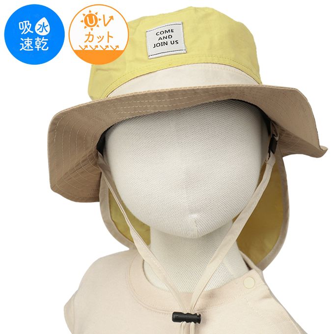 akachan honpo - 漁夫帽-附防曬遮陽布 動物印花-淺卡其色