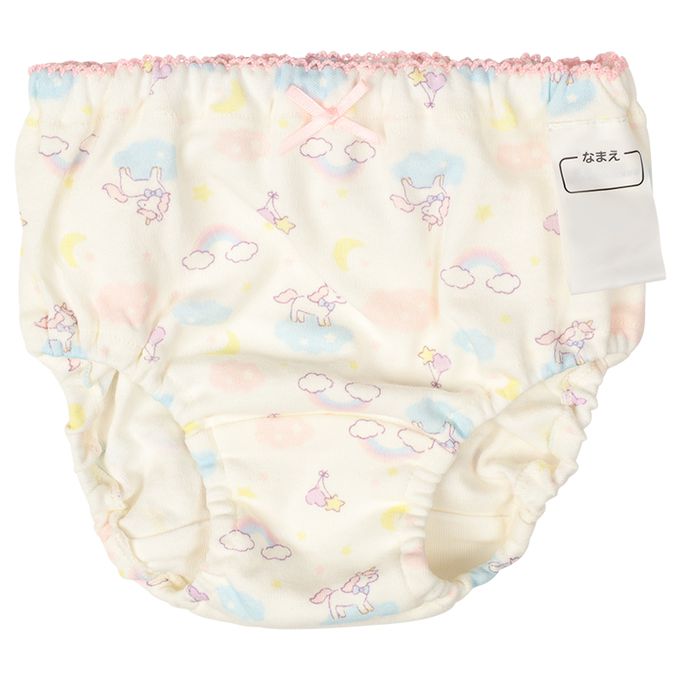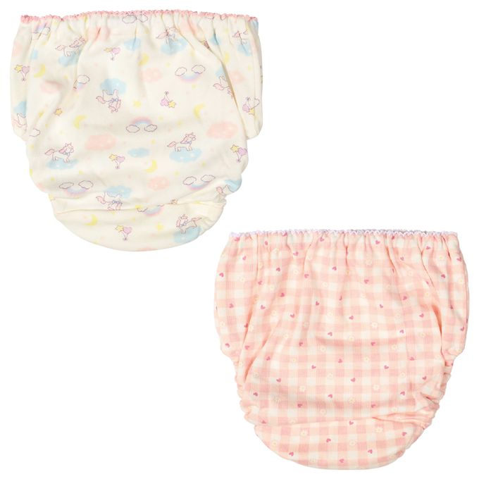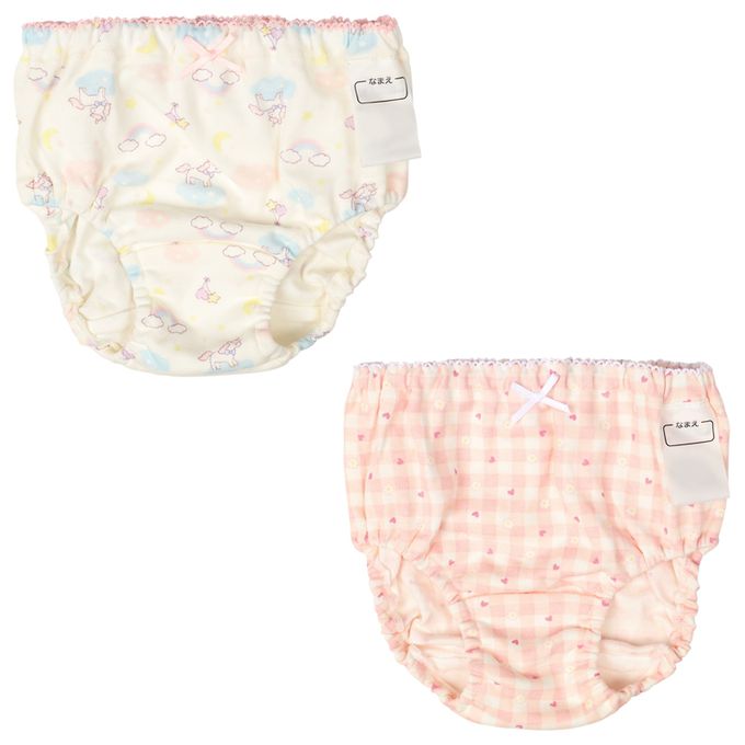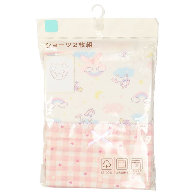 小女孩最喜歡的獨角獸圖案及簡約格子圖案的內褲2件組。兩種都有緞面蝴蝶結。