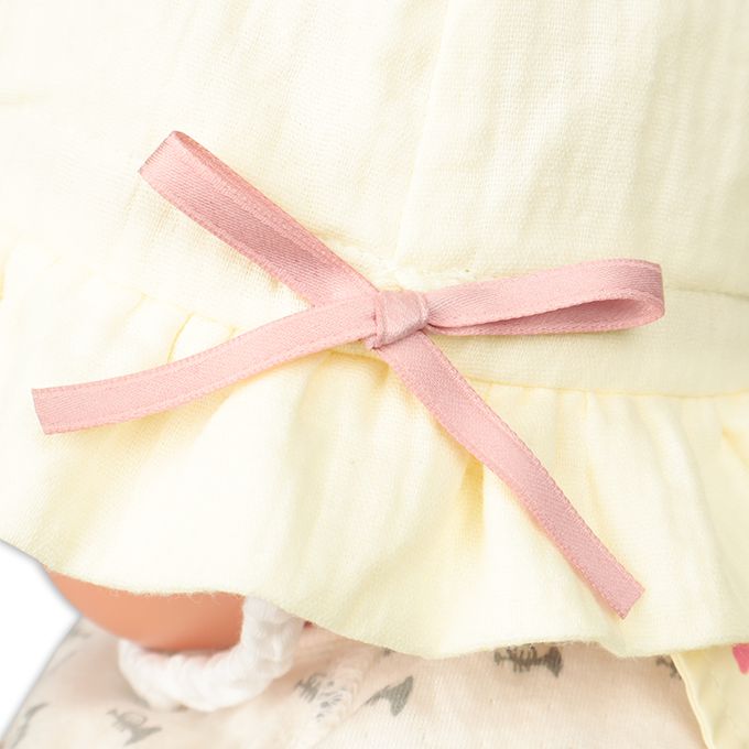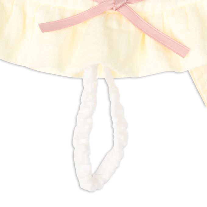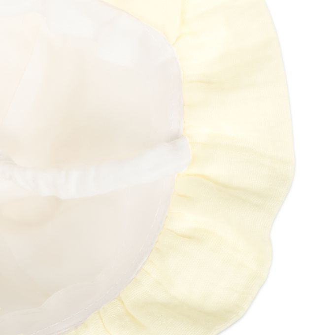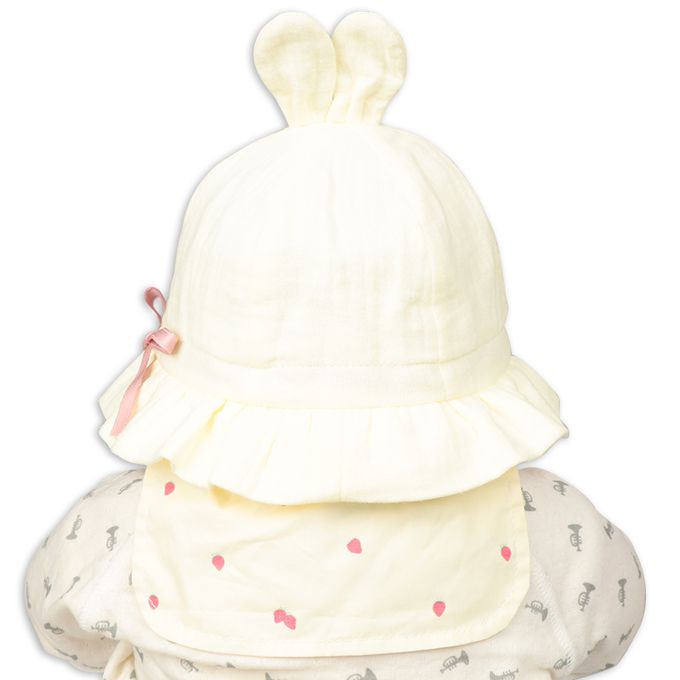 下巴有鬆緊帶可防止被風等吹落。下巴鬆緊帶用布料裹住,使膚觸更舒適。