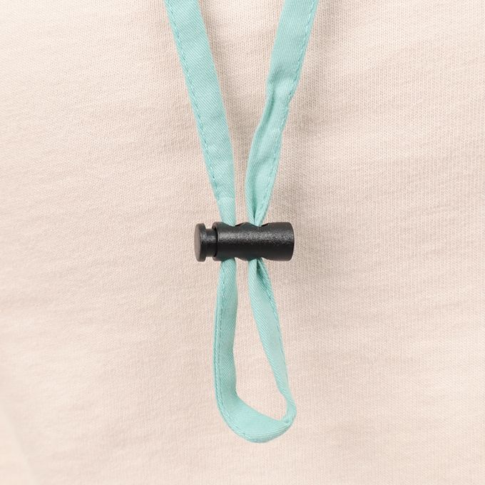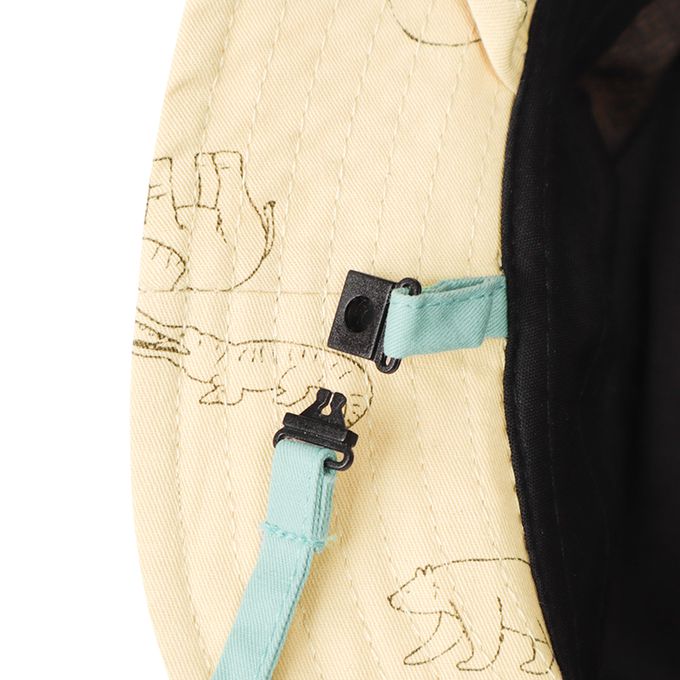 為防止被風等吹落,下巴有固定繩。固定繩受到強力拉扯時會自動鬆開。