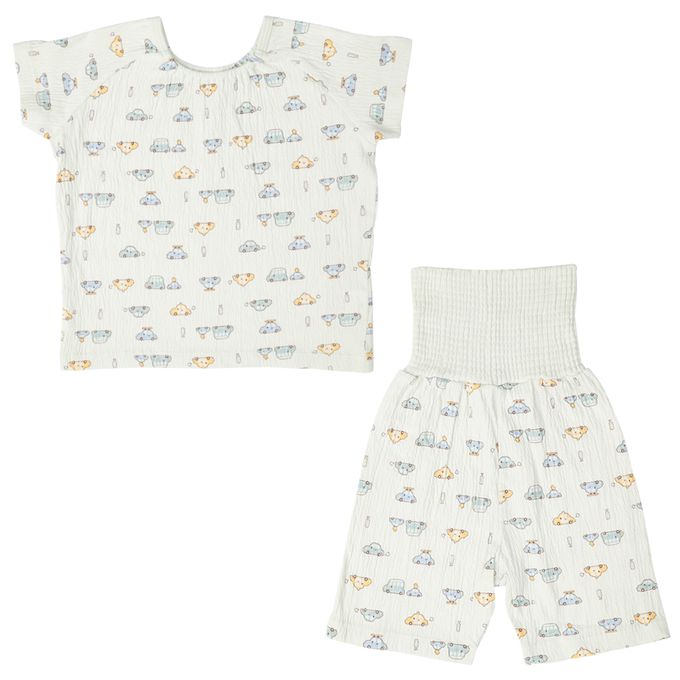 akachan honpo - 短袖家居服 穿衣練習-汽車-象牙白色