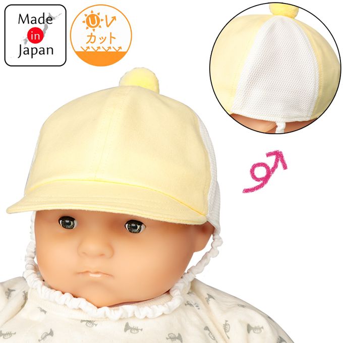 akachan honpo - 嬰幼兒網眼棒球帽-動物-黃色-日本製