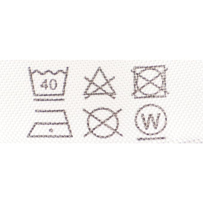 • 注意事項:●標示內容遵照台灣法規之規定。●請使用洗衣網。●請使用不含螢光增白劑的洗劑。●請勿熨燙釦子及印花部分。