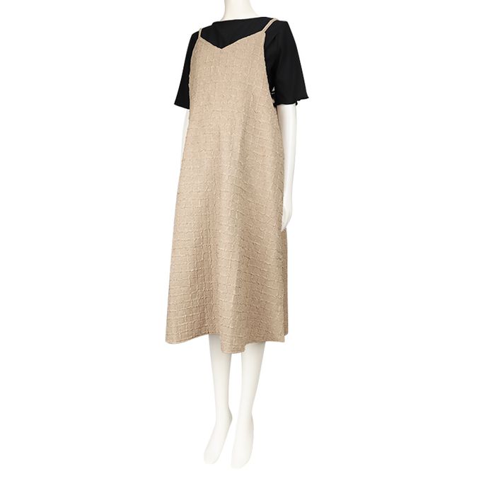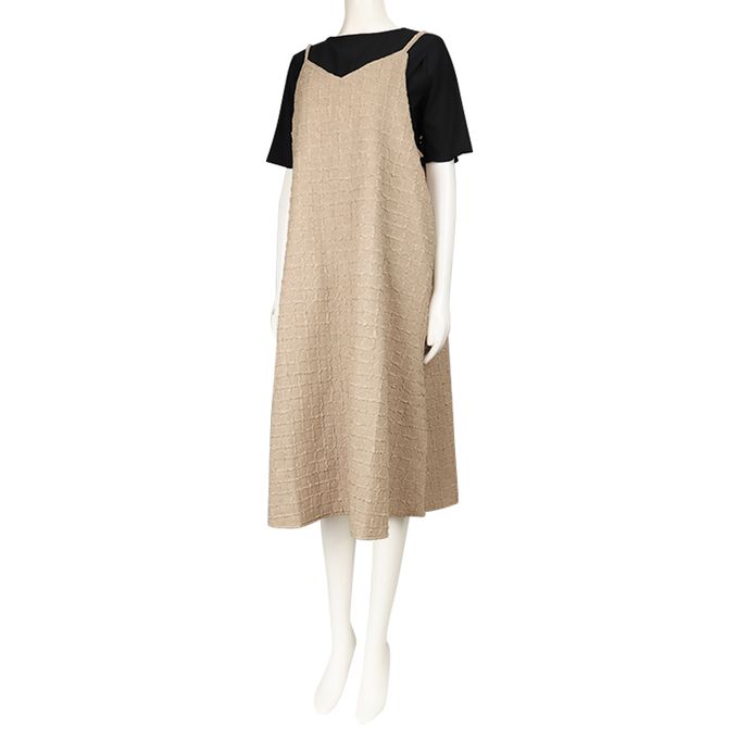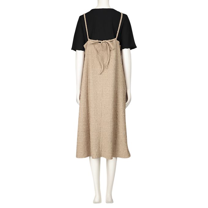 akachan honpo - 細肩帶洋裝-附短袖哺乳上衣-淺卡其色