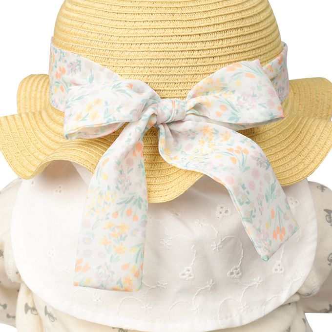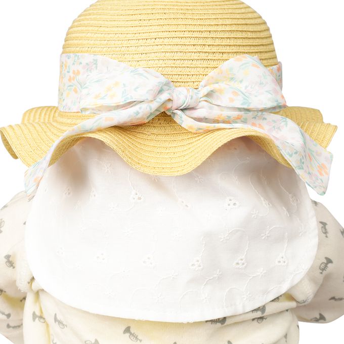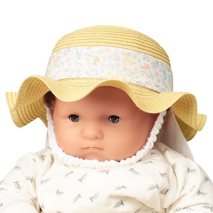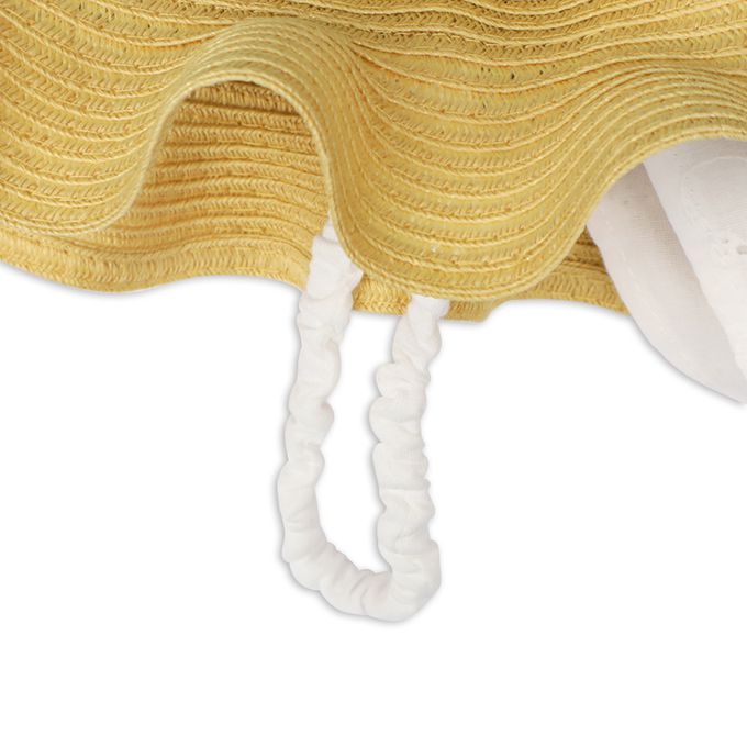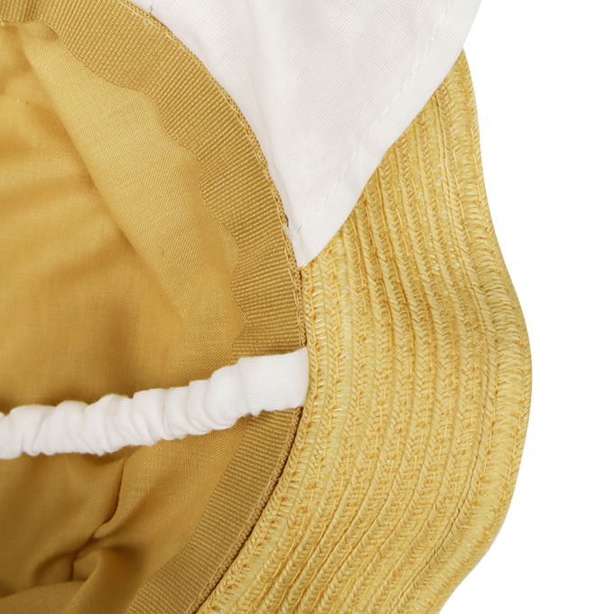 下巴有鬆緊帶可防止被風等吹落。下巴鬆緊帶用布料裹住,使膚觸更舒適。