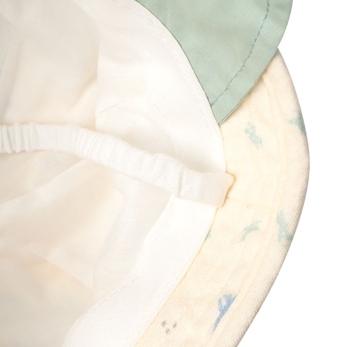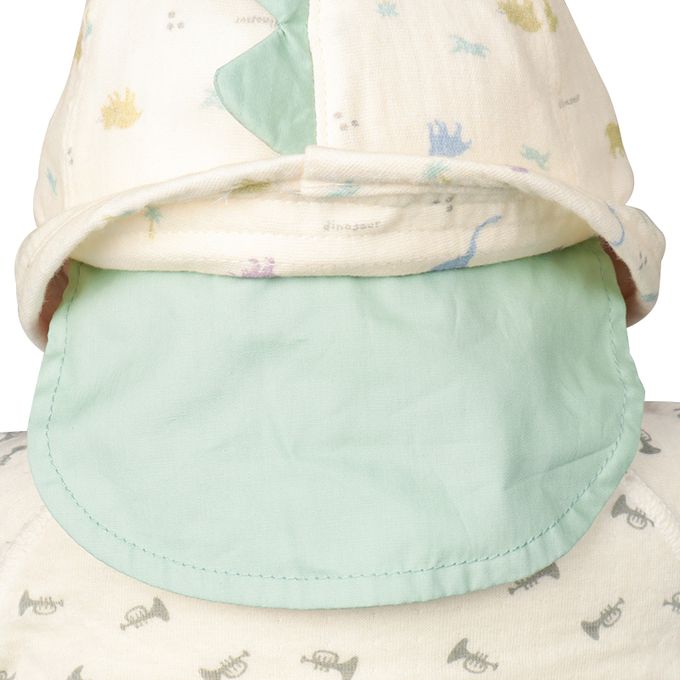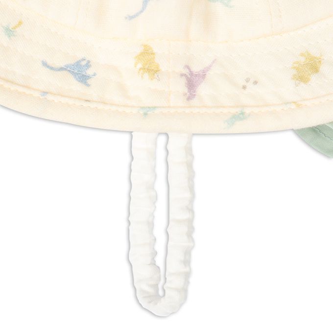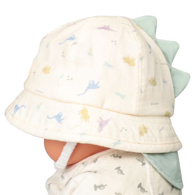 下巴有鬆緊帶可防止被風等吹落。下巴鬆緊帶用布料裹住,使膚觸更舒適。