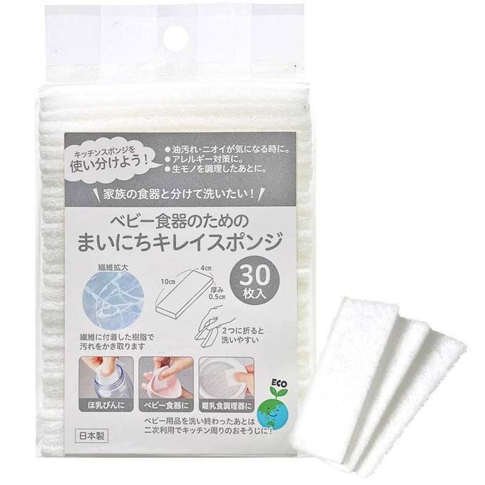 嬰兒餐具專用清潔海綿-30入-白色-日本製