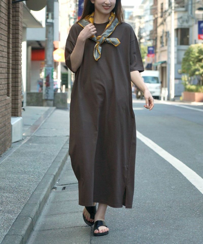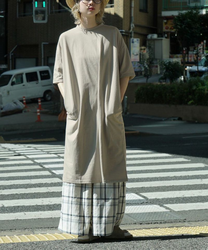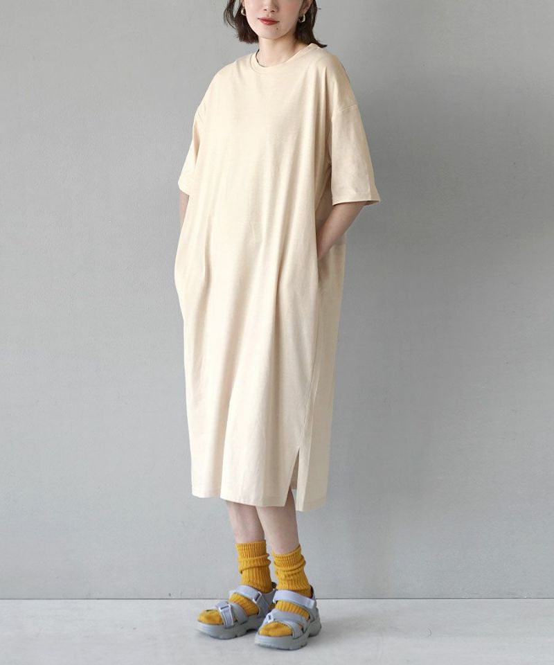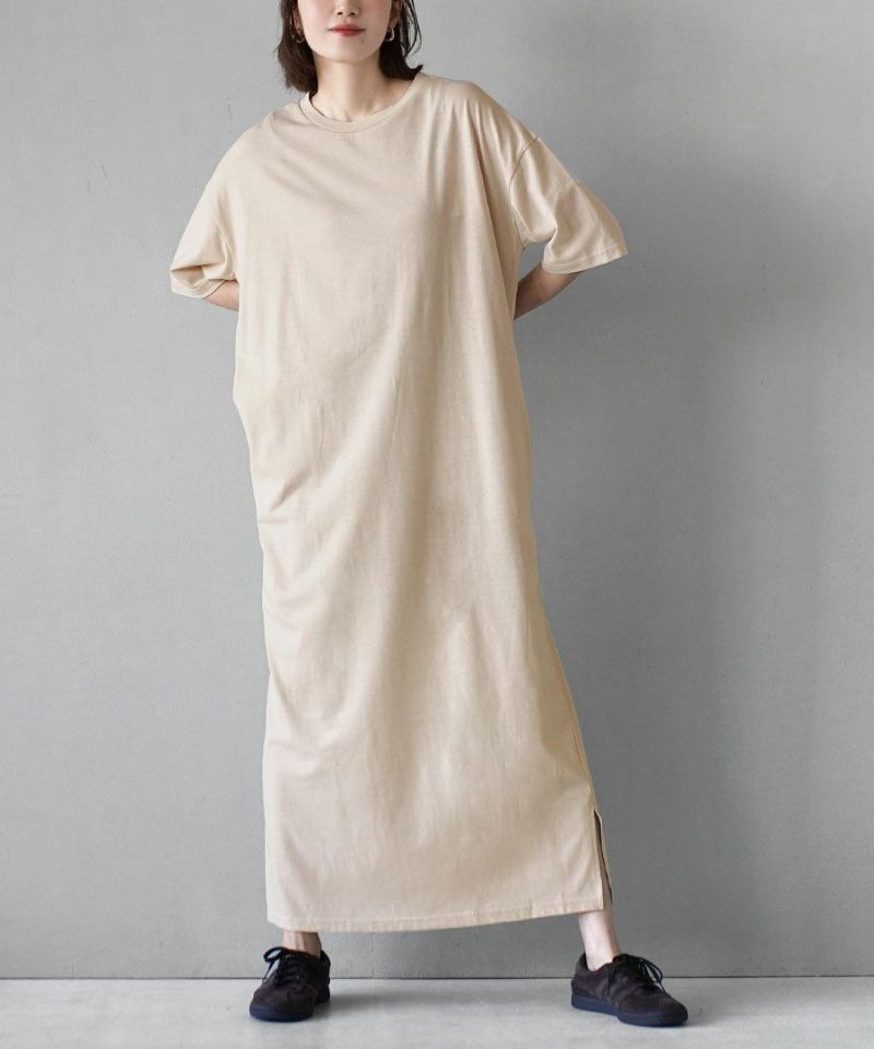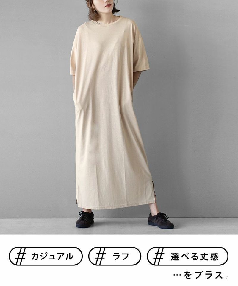 日本 zootie - URBAN+ 簡約休閒短袖洋裝(可選長度)-淺卡其