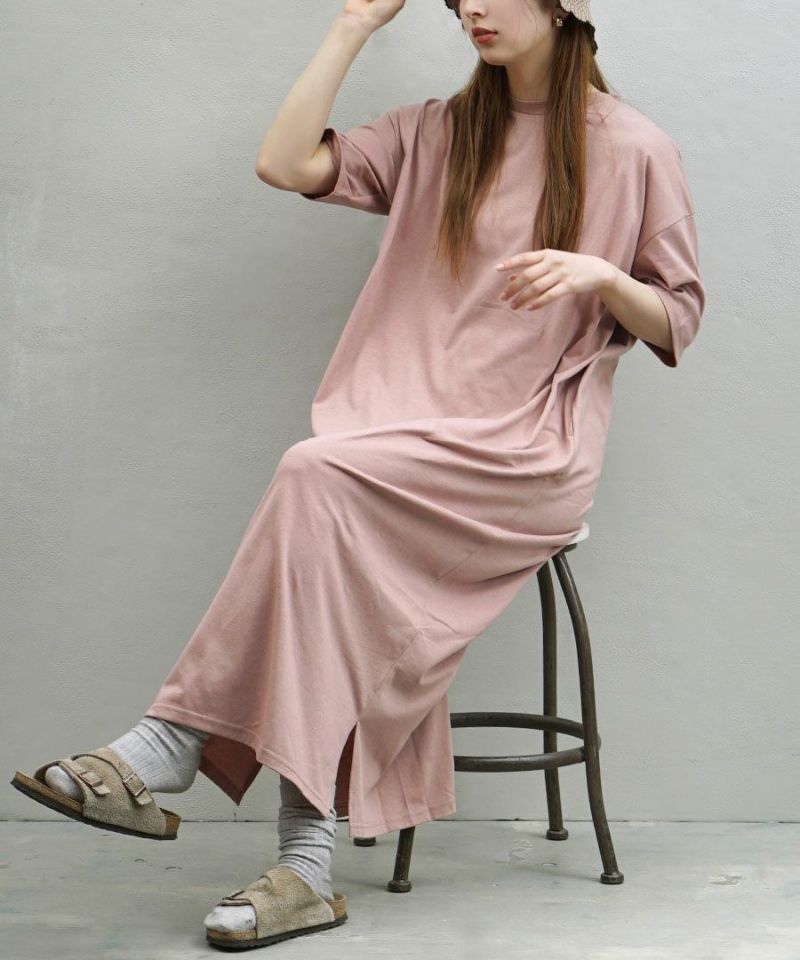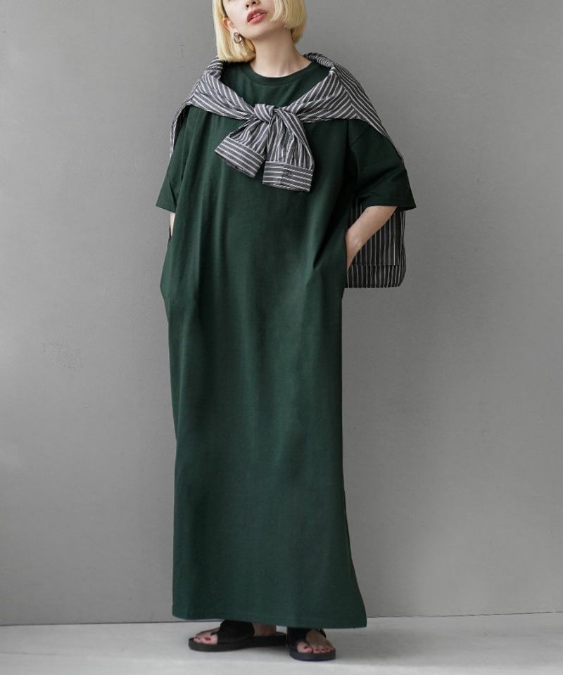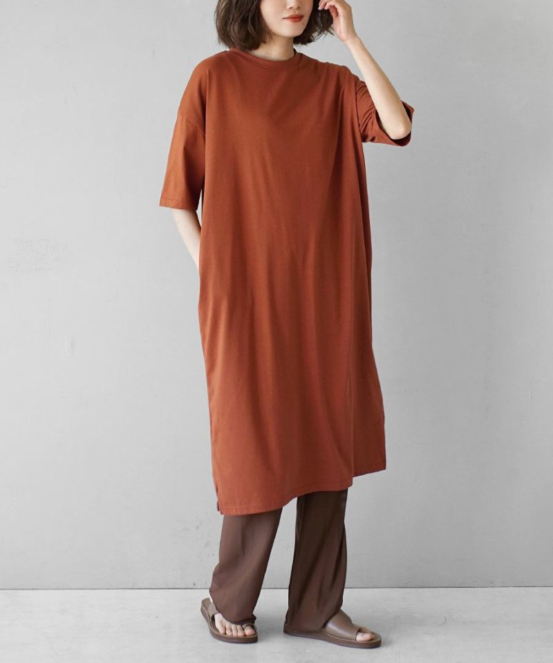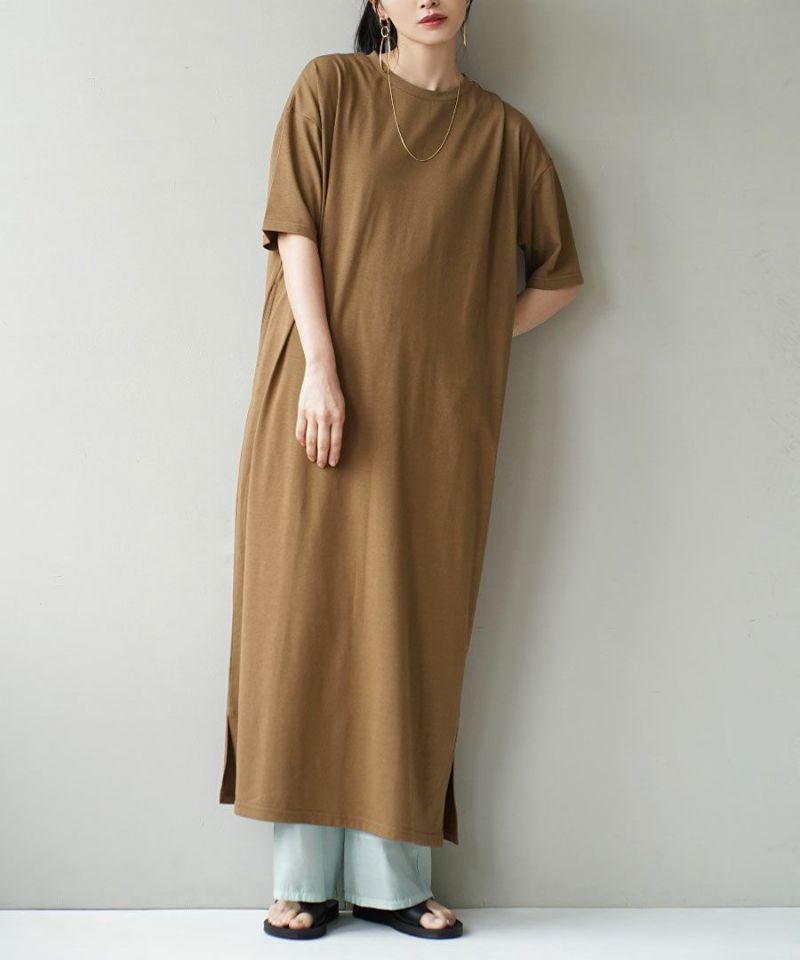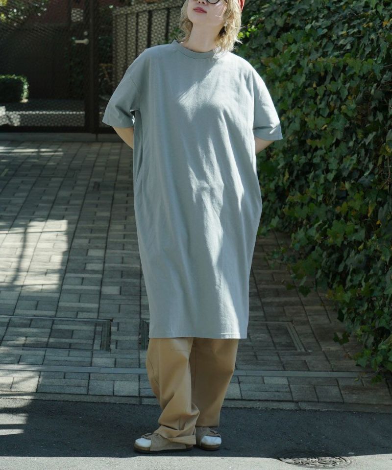 日本 zootie - URBAN+ 簡約休閒短袖洋裝(可選長度)-淺卡其