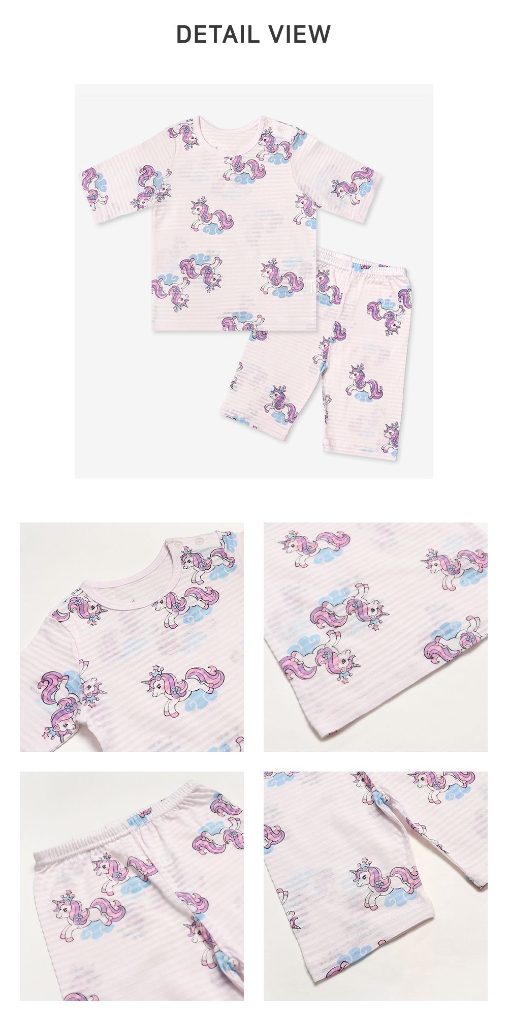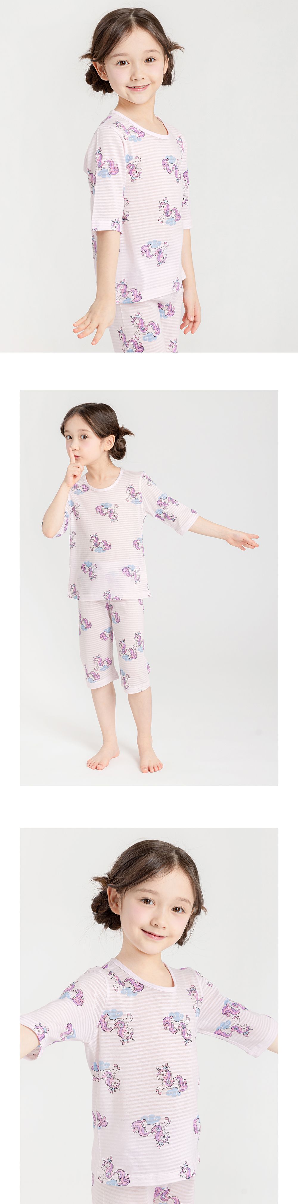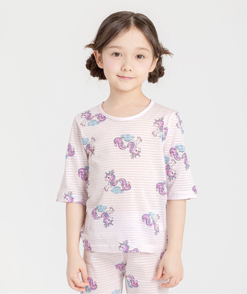 韓國 Mellisse - 韓製輕薄透氣7分袖家居服(無螢光棉)-王冠獨角獸-淡粉紫