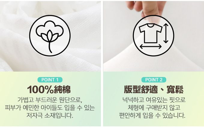 • 100%無螢光純棉,舒適好穿!