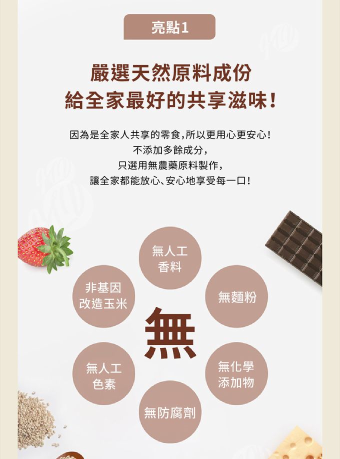 注意事項:※食用時請勿急吞,請搭配牛奶或水一起食用 ※為了防止孩童誤吞,請大人陪同食用