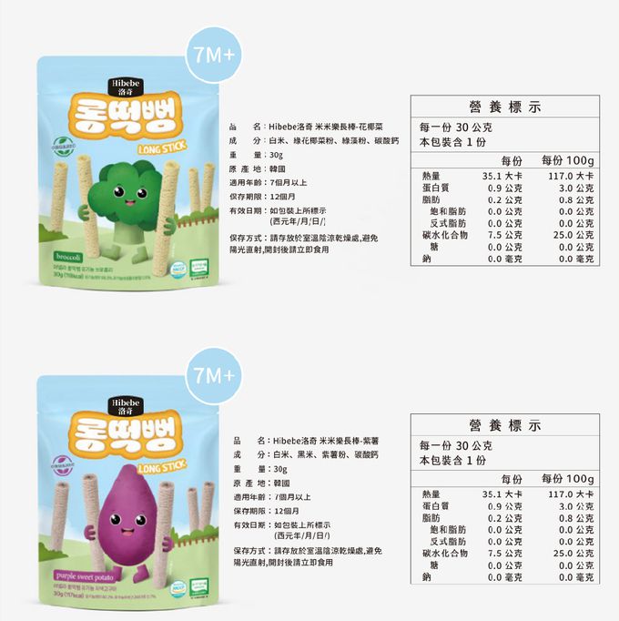 洛奇 米米樂長棒-蘋果/香蕉/花椰菜/紫薯 30g (7M+)|草莓牛奶 40g (12M+)