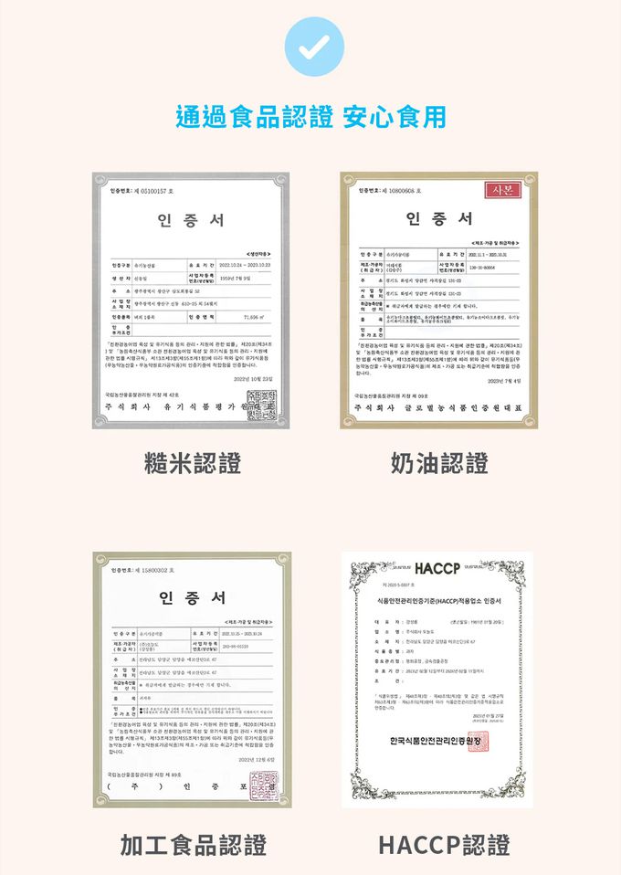 過敏原:※本產品生產線製程廠房,其設備生產管線有處理牛奶 、蛋、花生、大豆、海鮮類、堅果類、豬雞牛肉及其製品,不適合對其過敏者食用