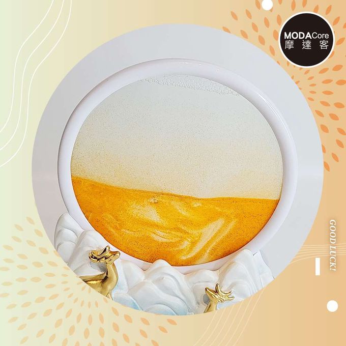 ◉開運招財◉淺藍漸層山水雙鹿立體創意橙色流沙畫擺飾三件套組_客廳玄關臥室好風水好運勢