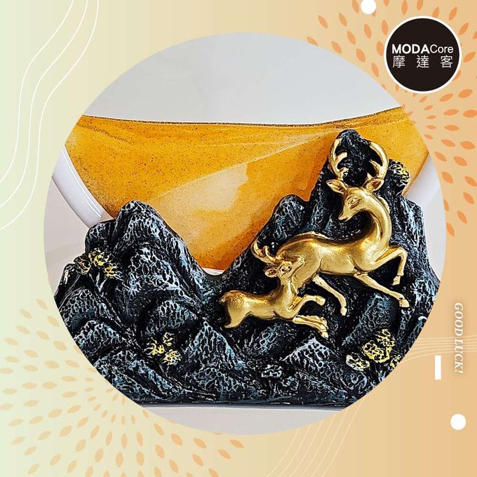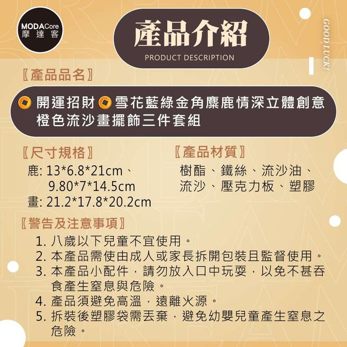 品名:◉開運招財◉雪花藍綠金角麋鹿情深立體創意橙色流沙畫擺飾三件套組_客廳玄關臥室好風水好運勢