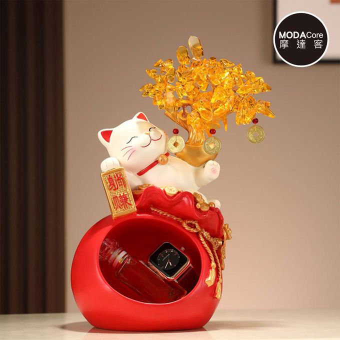 ◉開運招財◉紅色躺賺招財貓發財樹鑰匙收納錢洞百寶袋擺飾_客廳玄關臥室好風水好運勢