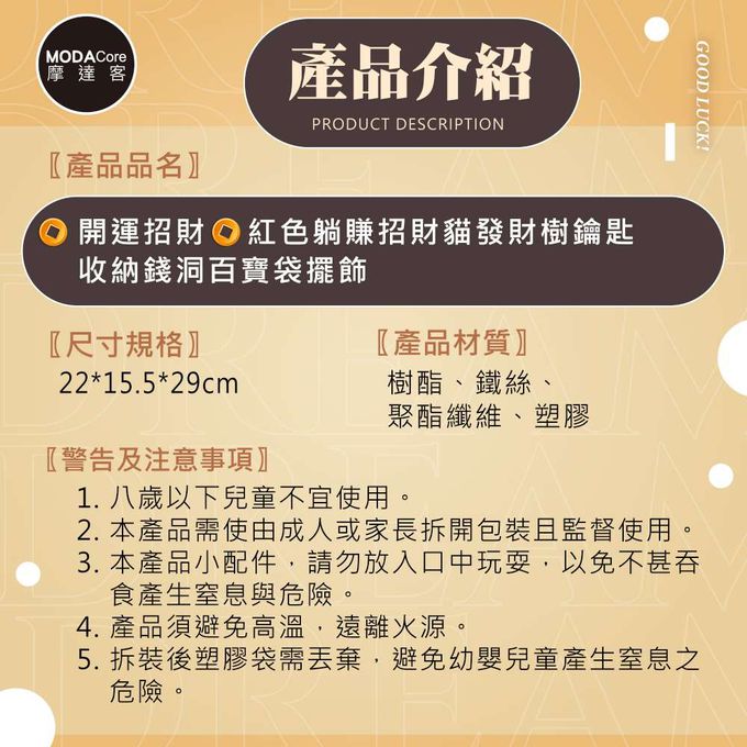 品名:◉開運招財◉紅色躺賺招財貓發財樹鑰匙收納錢洞百寶袋擺飾_客廳玄關臥室好風水好運勢