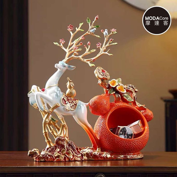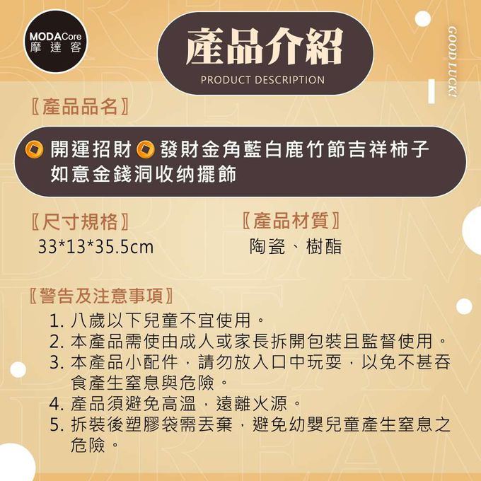 品名:◉開運招財◉發財金角藍白鹿竹節吉祥柿子如意金錢洞收纳擺飾_客廳玄關臥室好風水好運勢