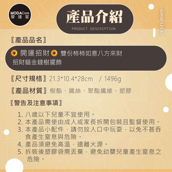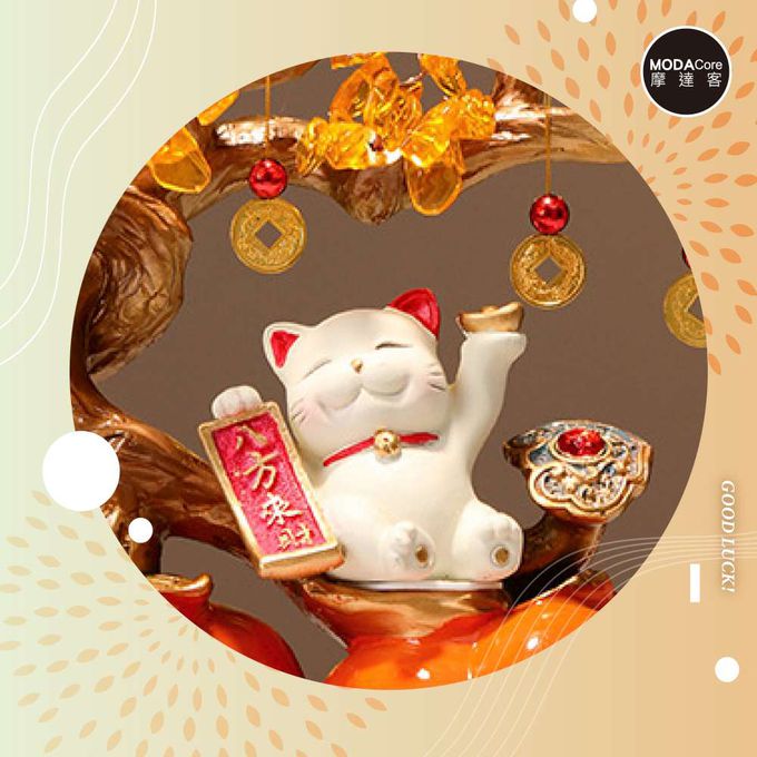 品名:◉開運招財◉雙份柿柿如意八方來財招財貓金錢樹擺飾_客廳玄關臥室好風水好運勢