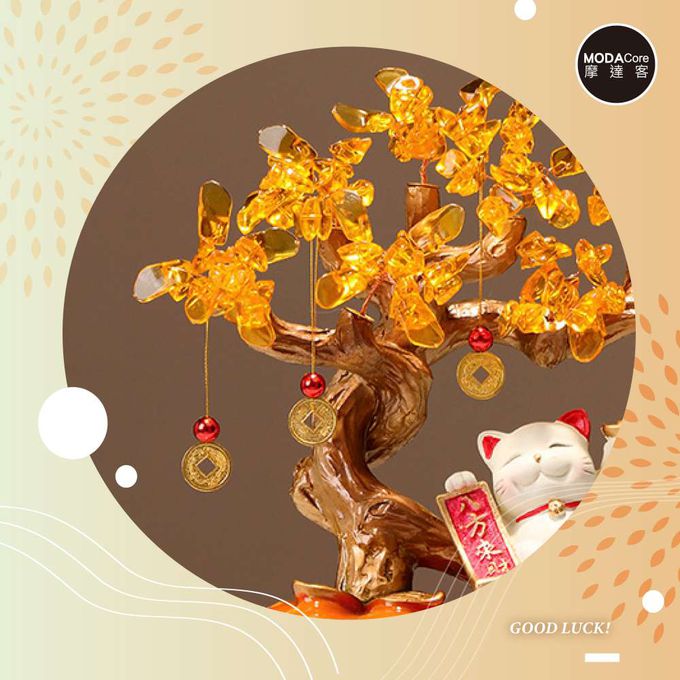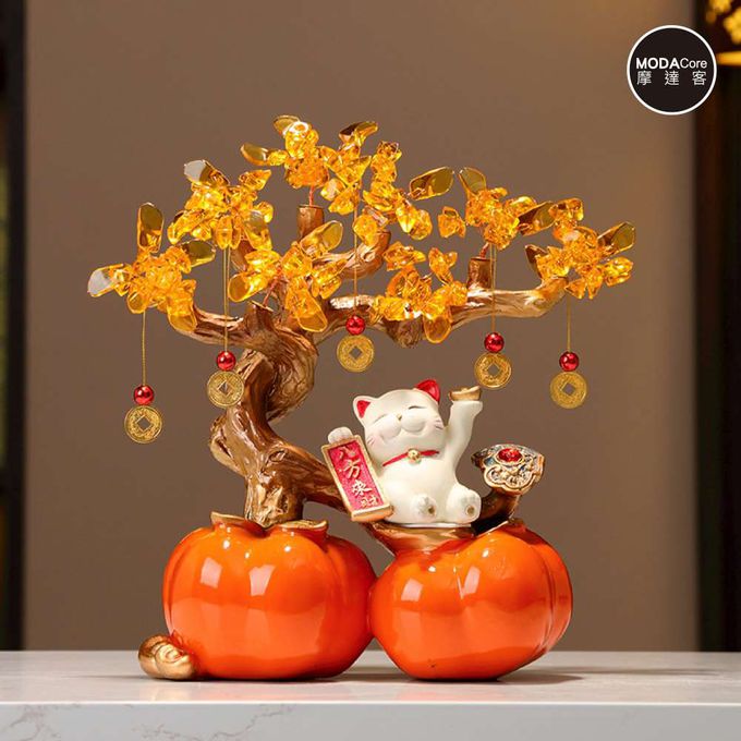 ◉開運招財◉雙份柿柿如意八方來財招財貓金錢樹擺飾_客廳玄關臥室好風水好運勢