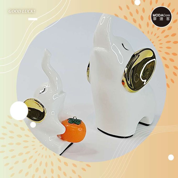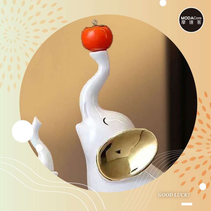 ◉開運招財◉優雅白金吉象一家三口柿柿如意設計擺飾_客廳玄關臥室好風水好運勢
