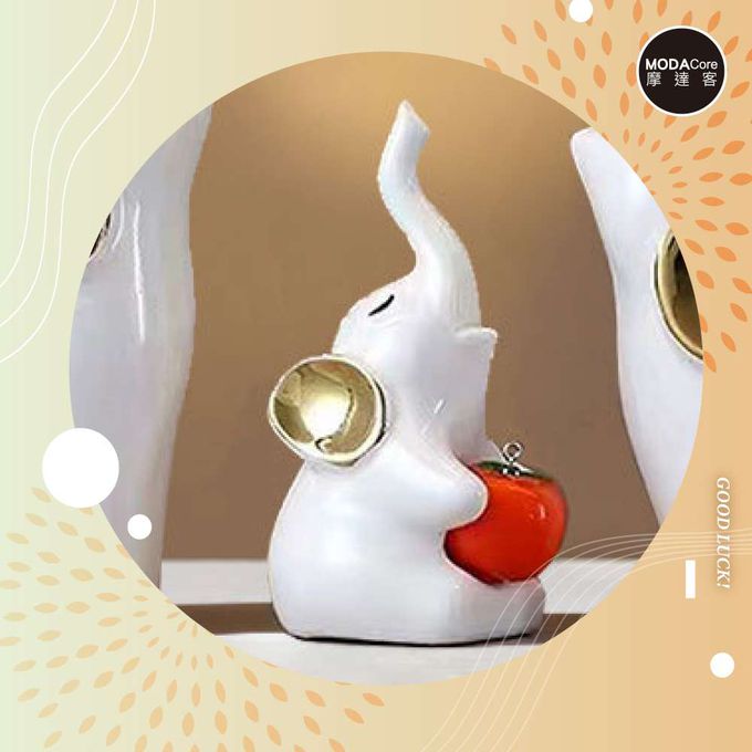 品名:◉開運招財◉優雅白金吉象一家三口柿柿如意設計擺飾_客廳玄關臥室好風水好運勢