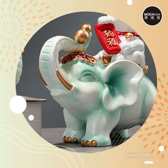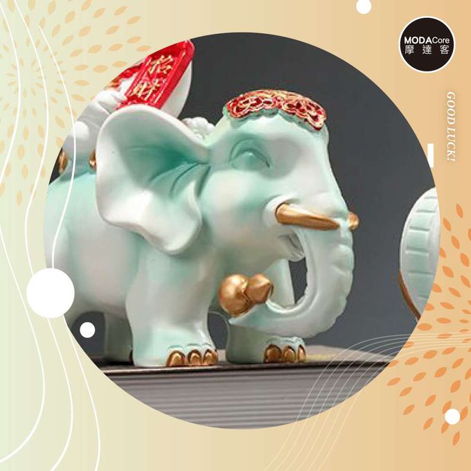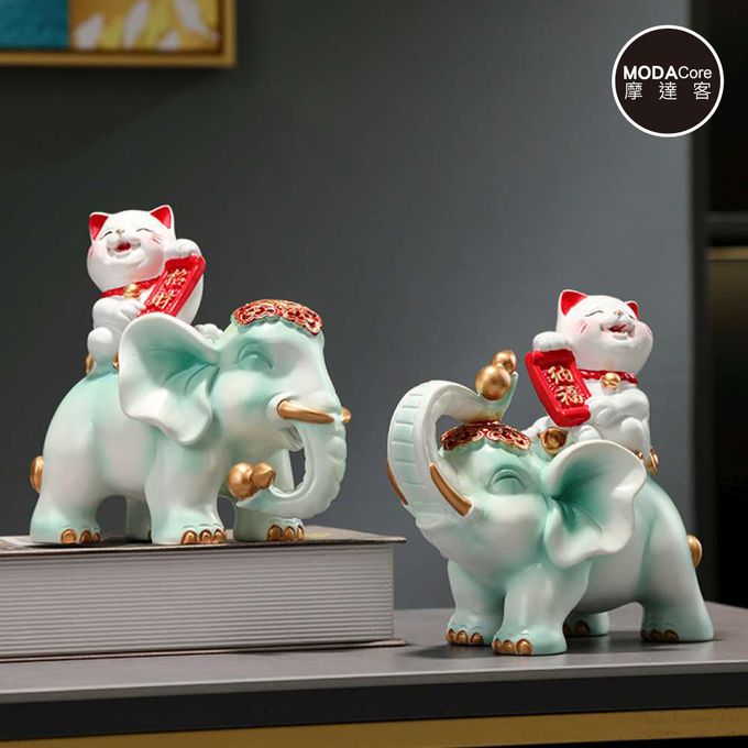 ◉開運招財◉高級精緻淺綠色招財納福招財貓吉祥大象對組擺飾_客廳玄關臥室好風水好運勢