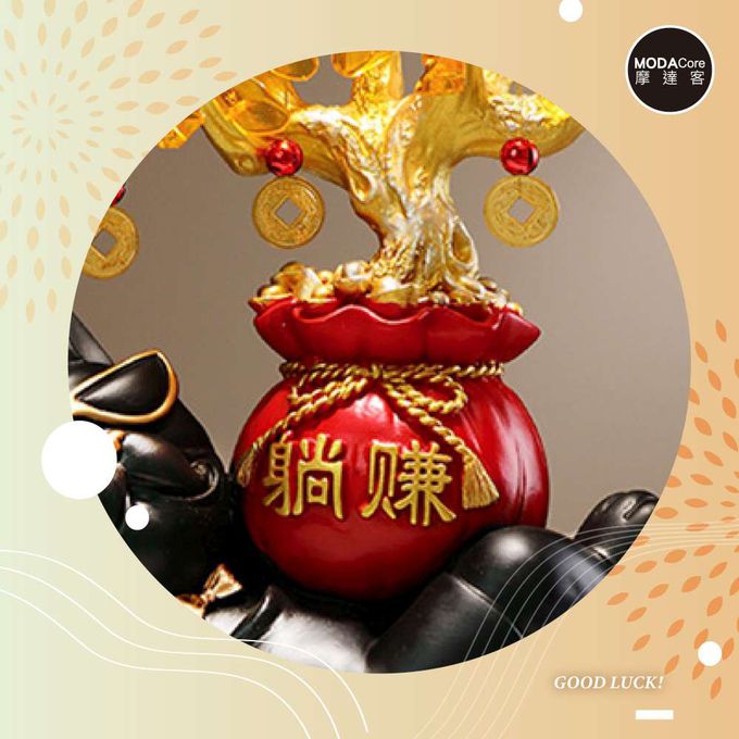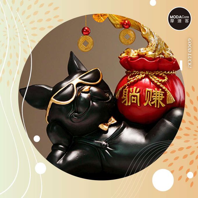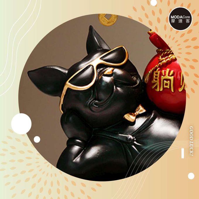 品名:◉開運招財◉創意時尚黑色躺賺帥氣法鬥犬狗抱紅百寶錢袋發財樹擺飾組_客廳玄關臥室好風水好運勢
