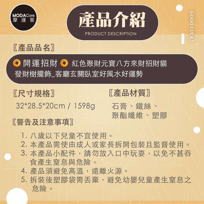 品名:◉開運招財◉紅色聚財元寶八方來財招財貓發財樹擺飾_客廳玄關臥室好風水好運勢