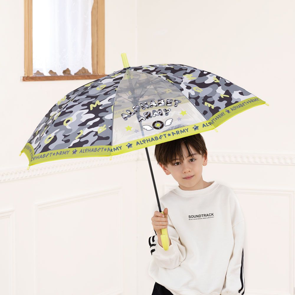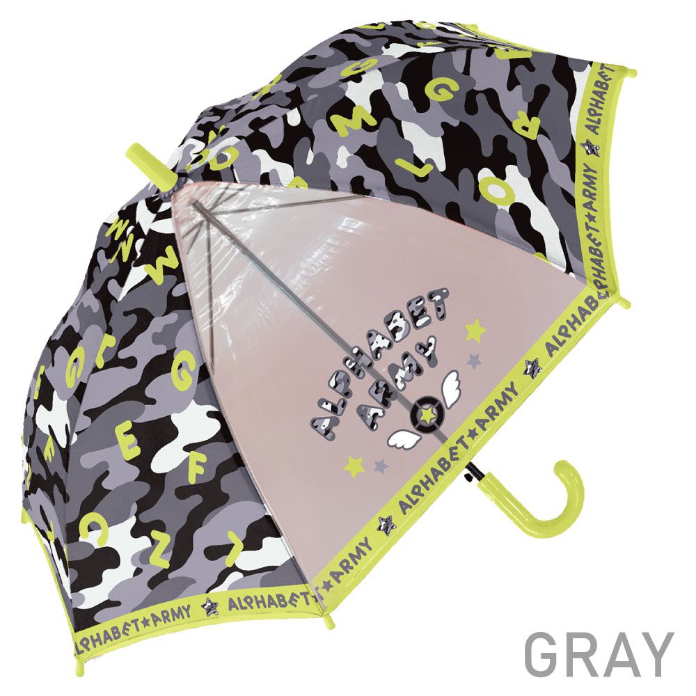 日本中谷 - 童趣透明窗親骨耐風兒童直傘-英文迷彩-黑灰 (50cm)