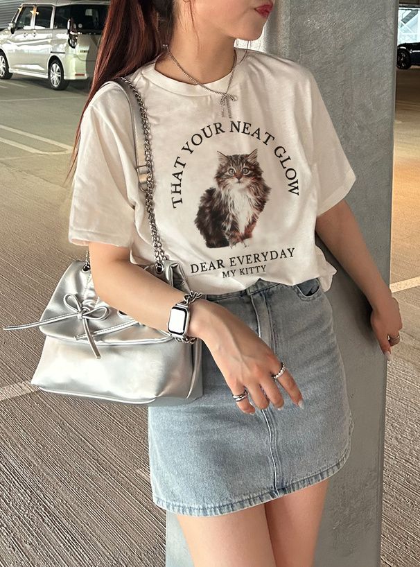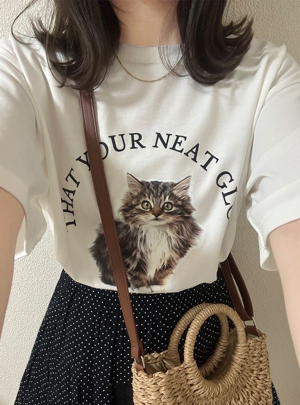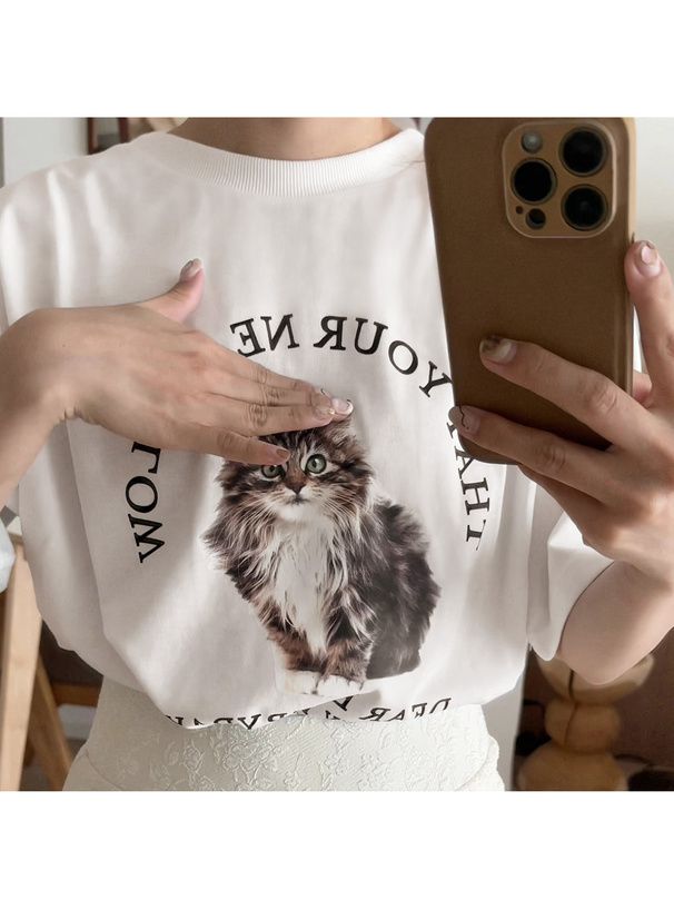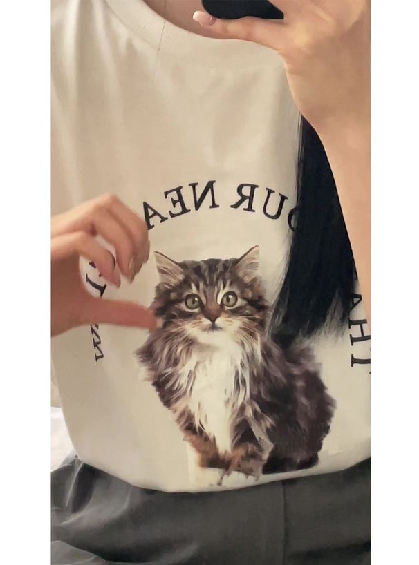 可愛貓咪印花短袖T恤
