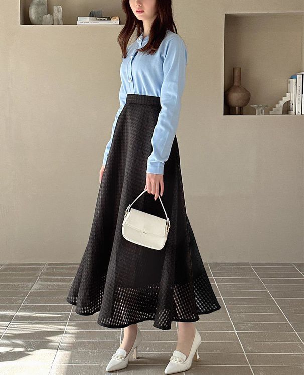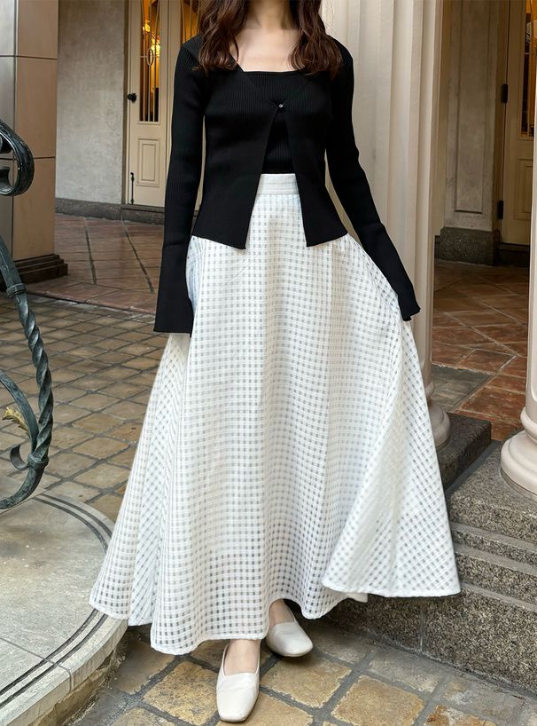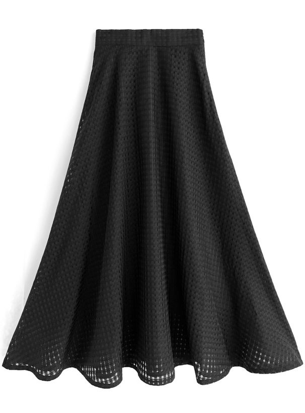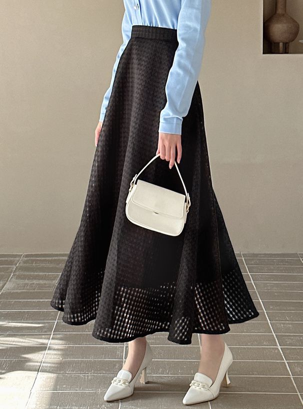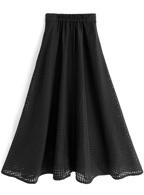 日本 GRL - 透明感網格傘狀蓬鬆長裙-黑