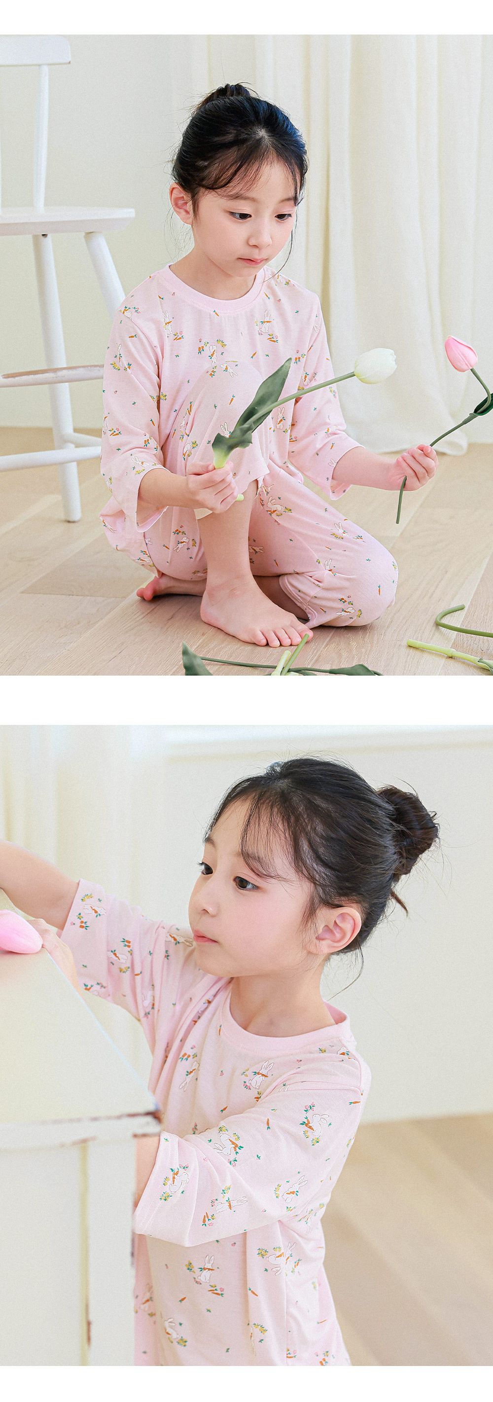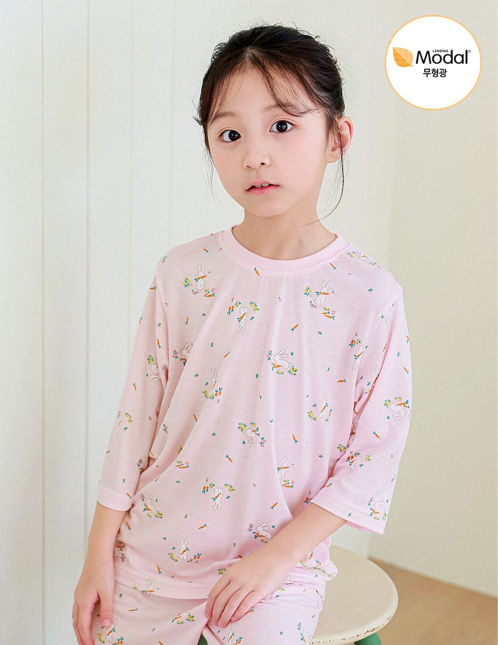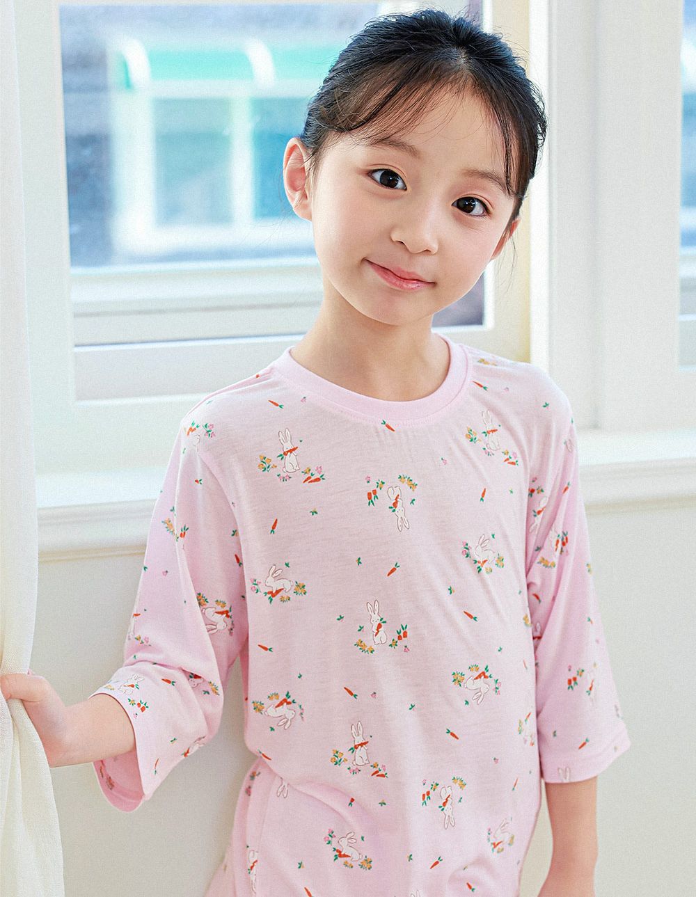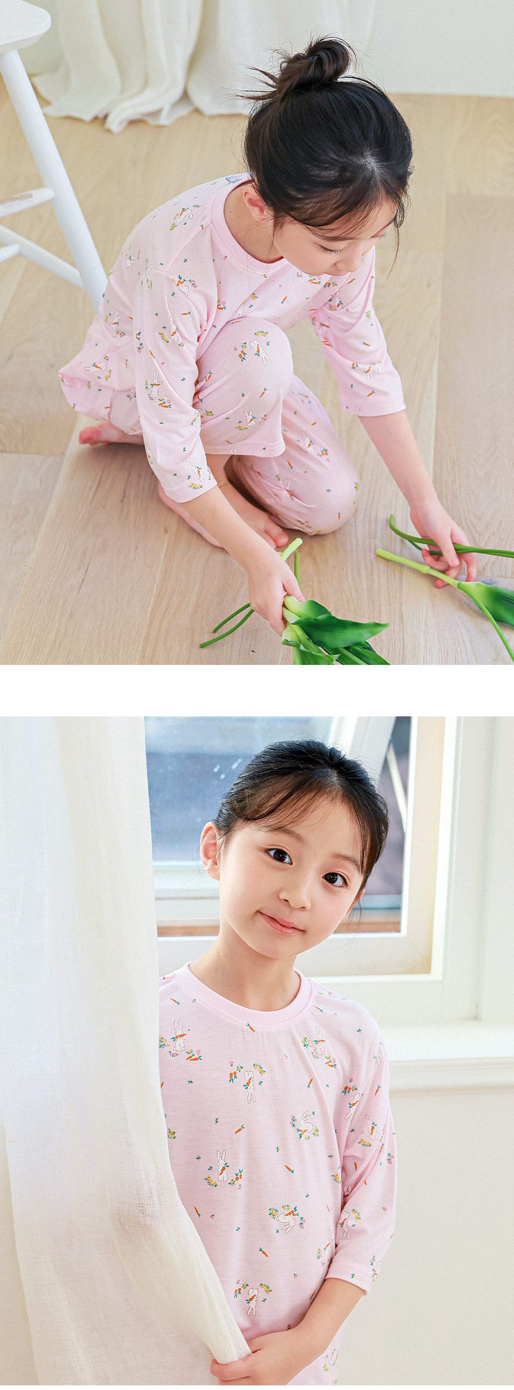 韓國 Ppippilong - 親膚莫代爾7分袖家居服/睡衣-紅蘿蔔兔子-粉