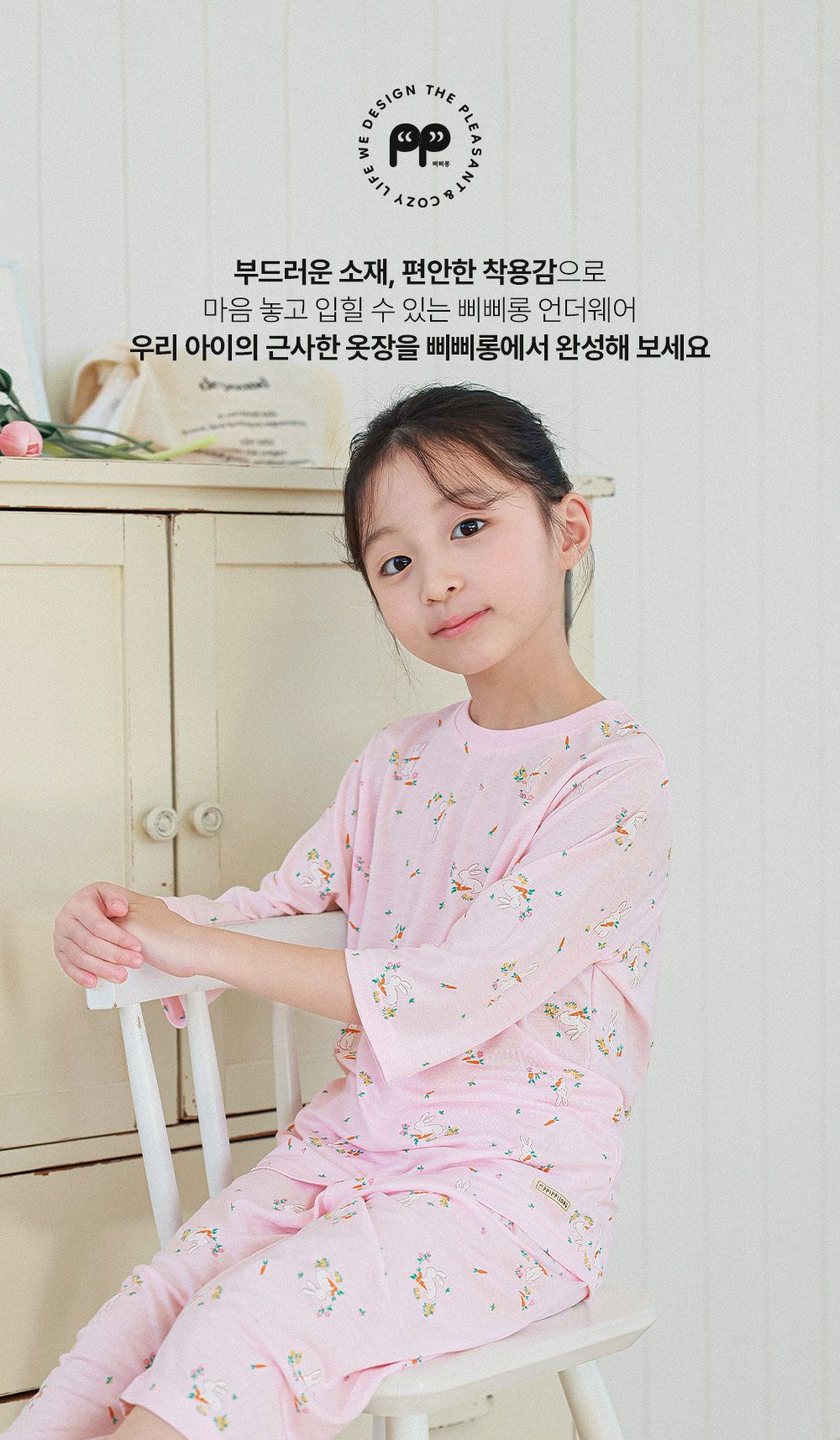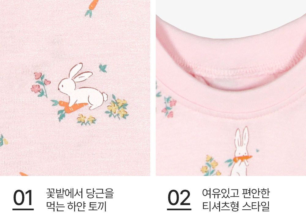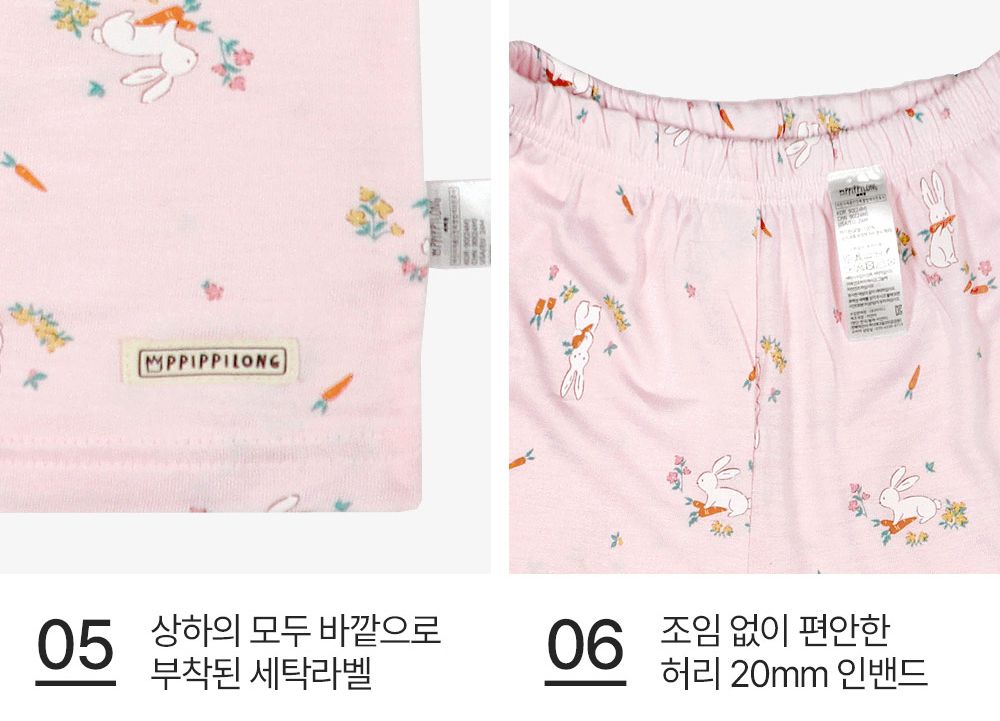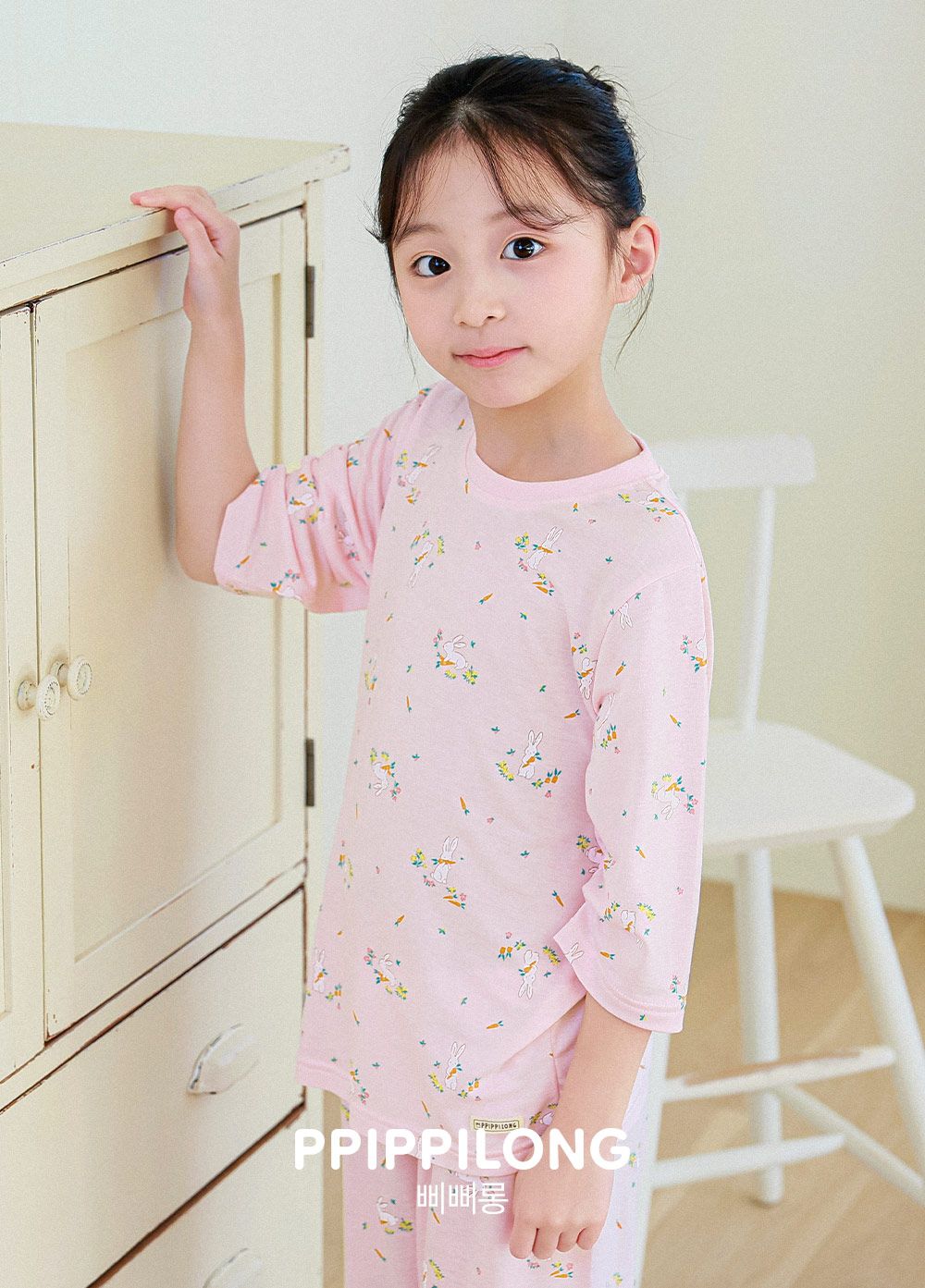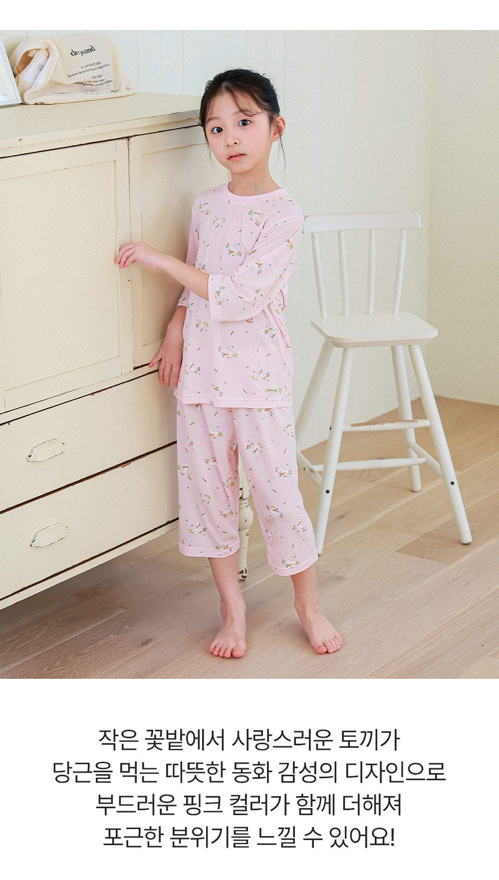 韓國 Ppippilong - 親膚莫代爾7分袖家居服/睡衣-紅蘿蔔兔子-粉