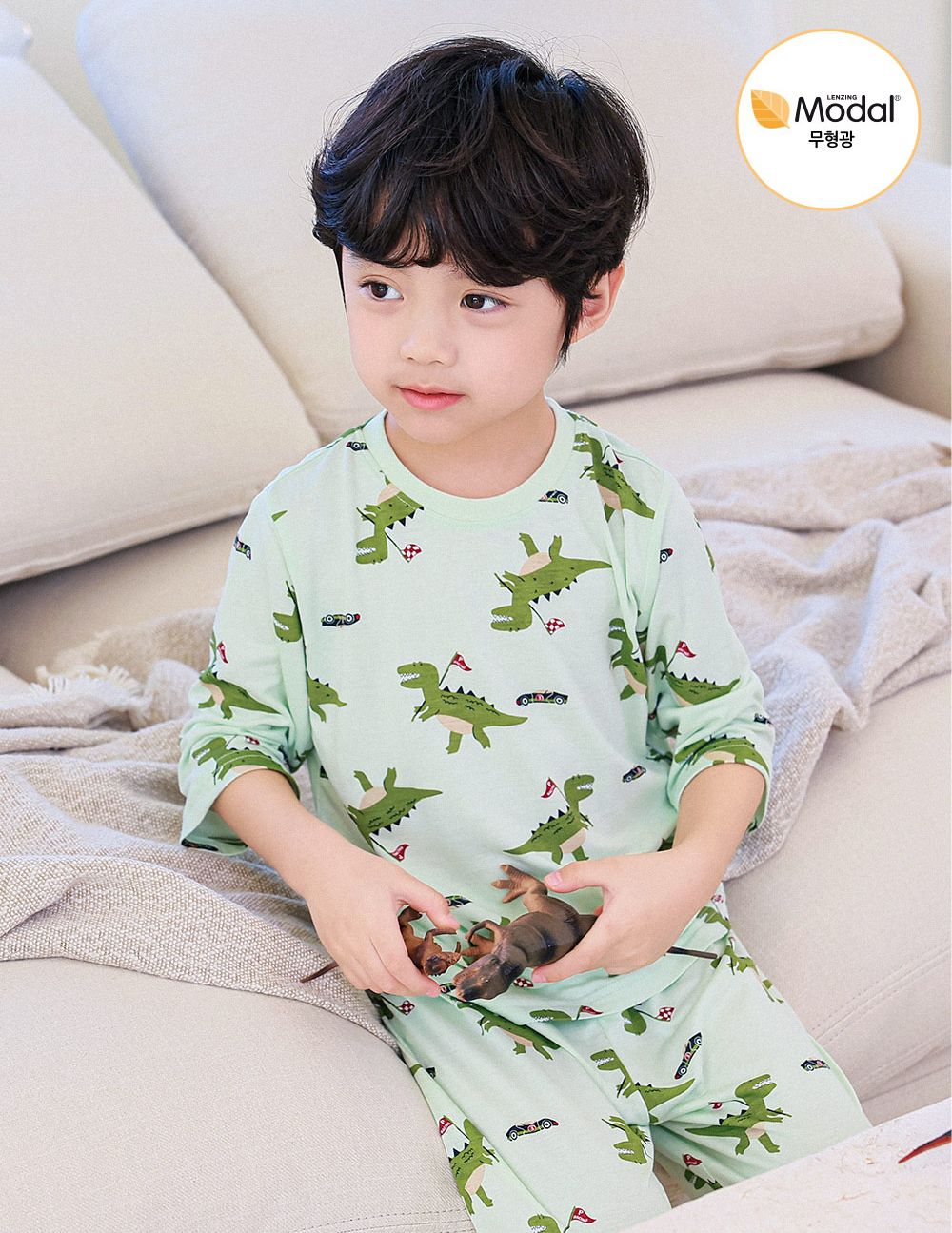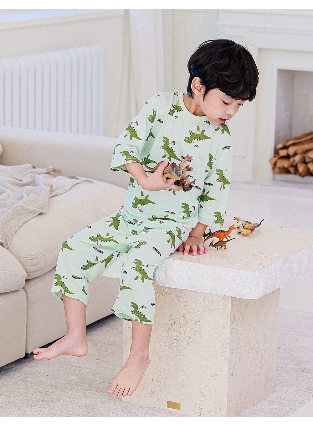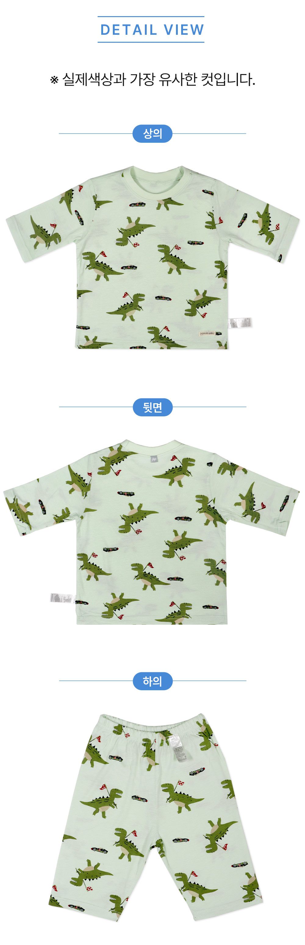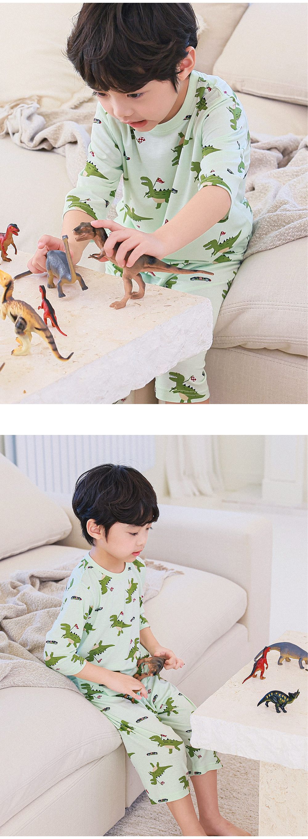 韓國 Ppippilong - 親膚莫代爾7分袖家居服/睡衣-賽車恐龍-淺綠