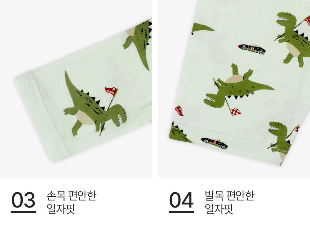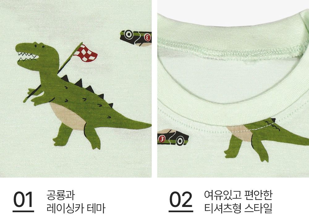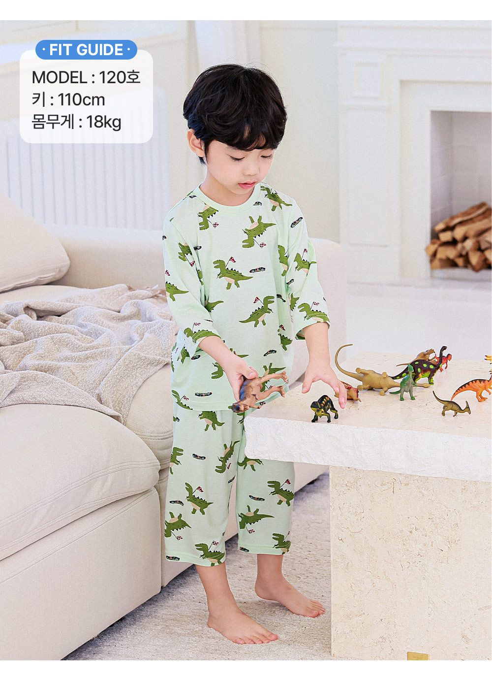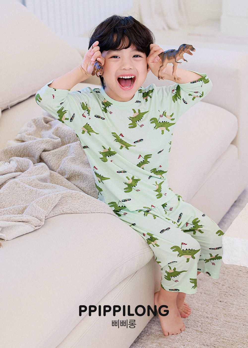 韓國 Ppippilong - 親膚莫代爾7分袖家居服/睡衣-賽車恐龍-淺綠