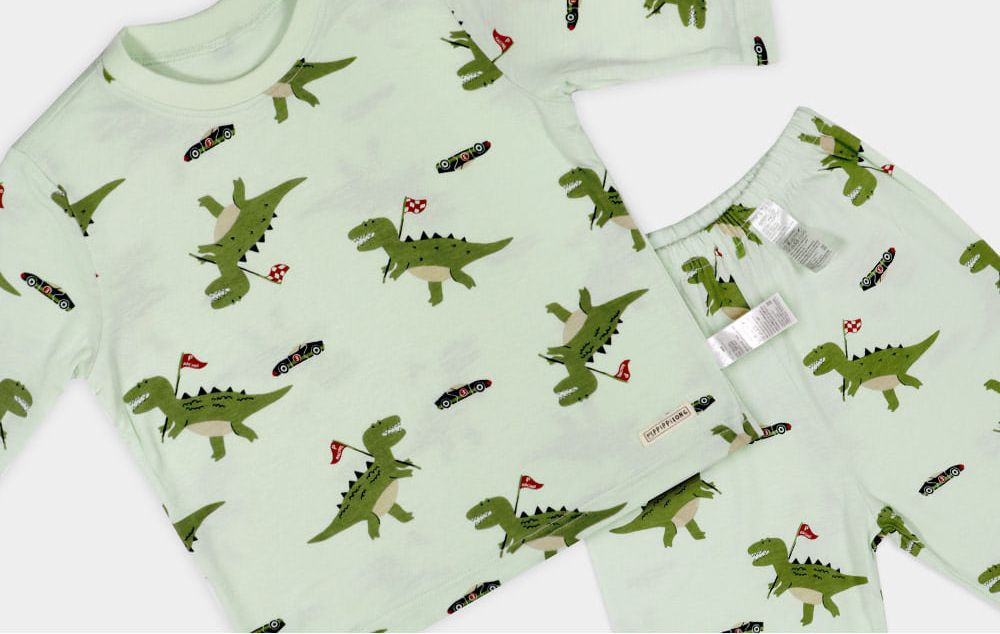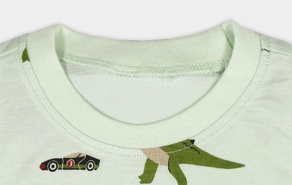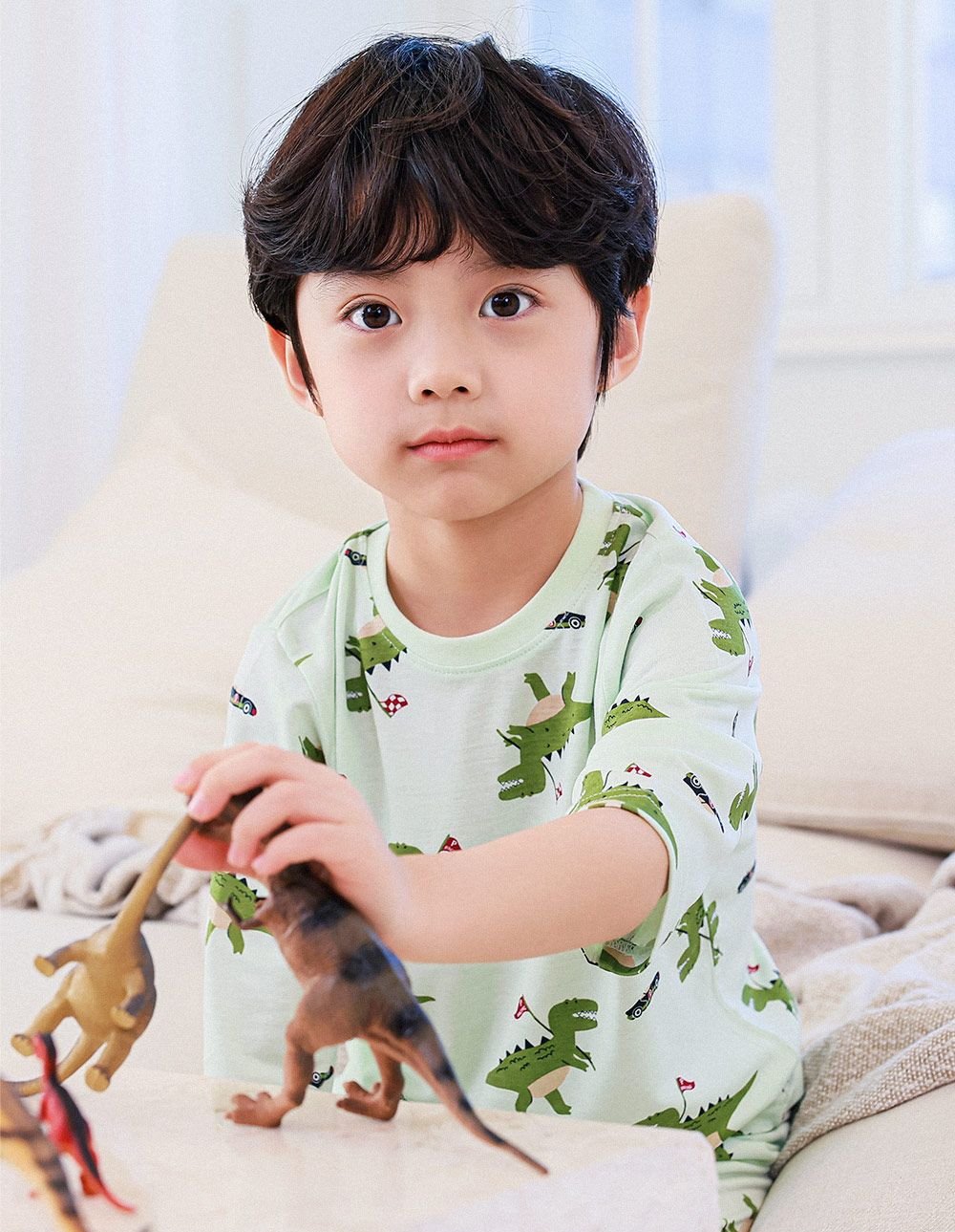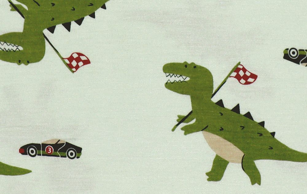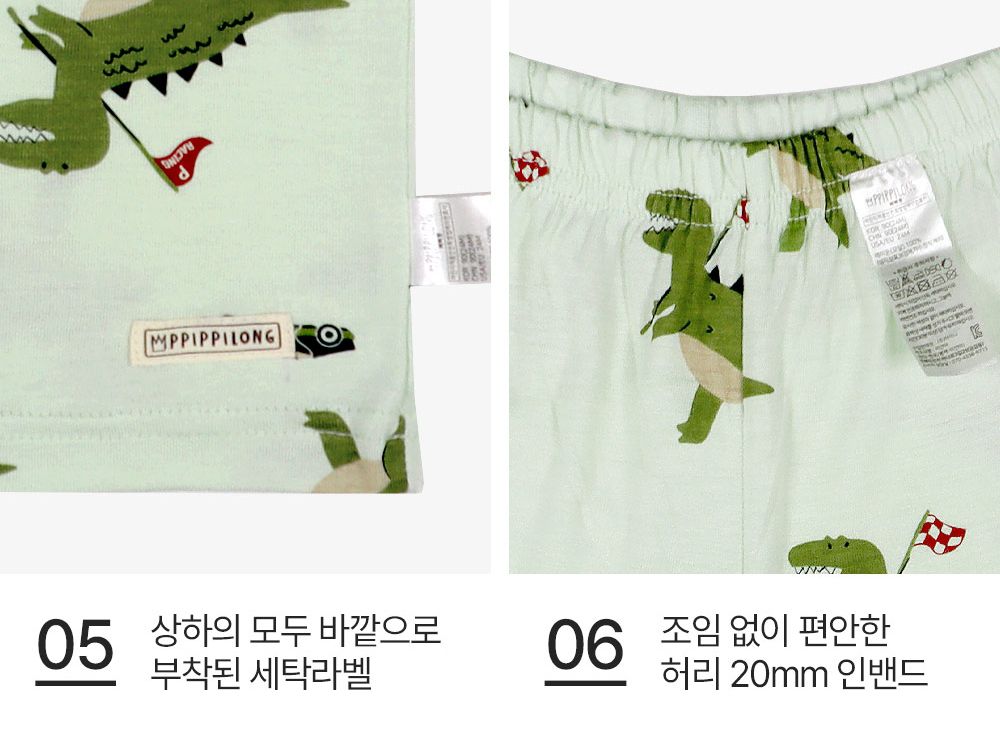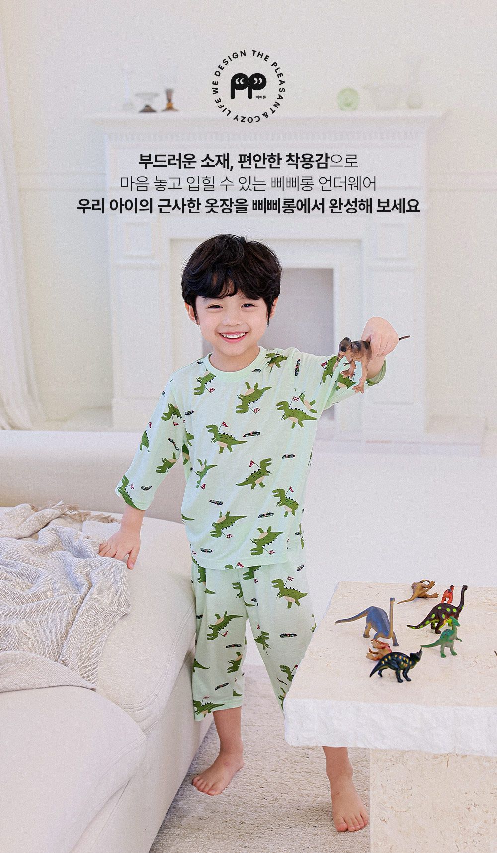 韓國 Ppippilong - 親膚莫代爾7分袖家居服/睡衣-賽車恐龍-淺綠