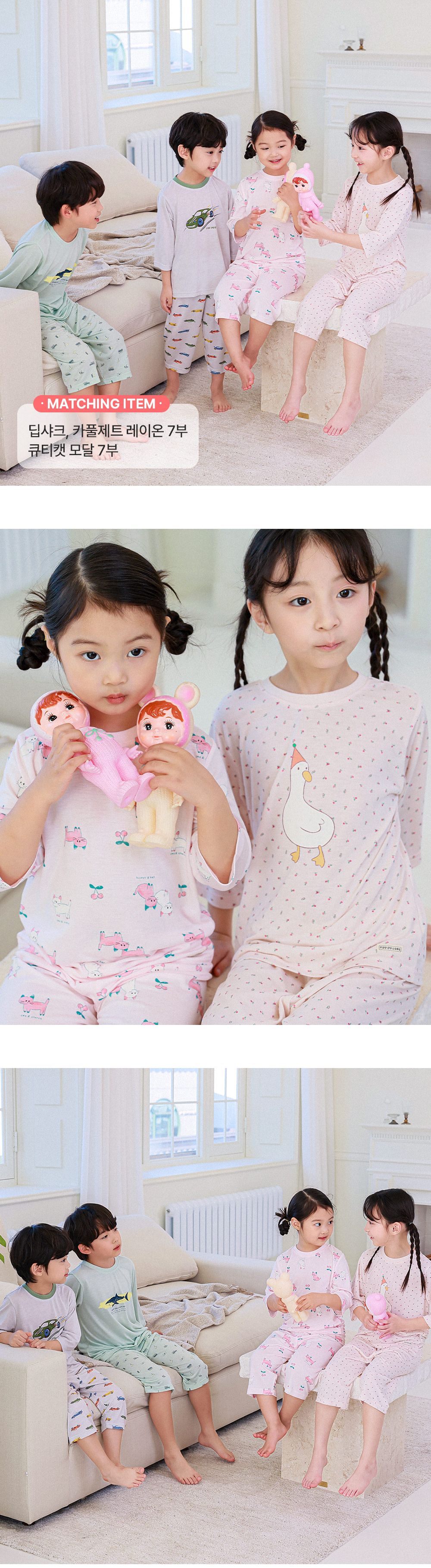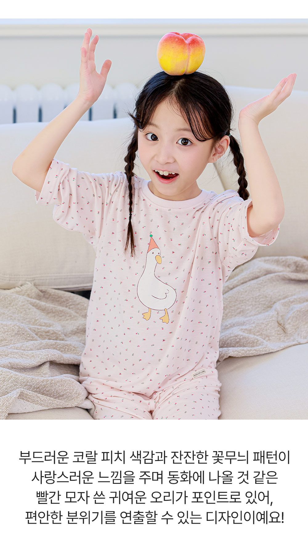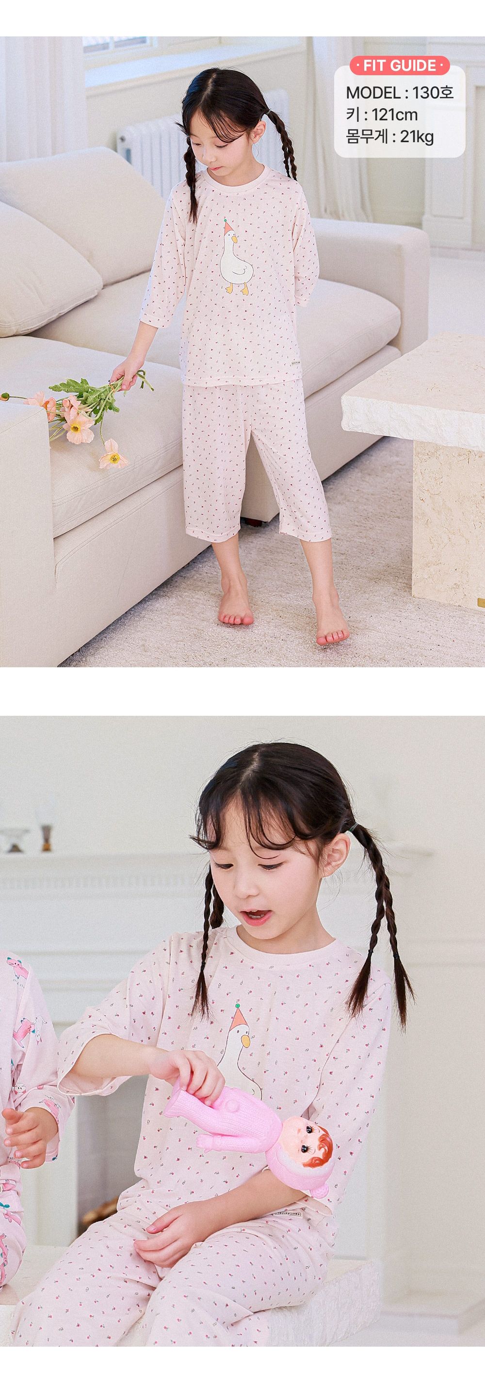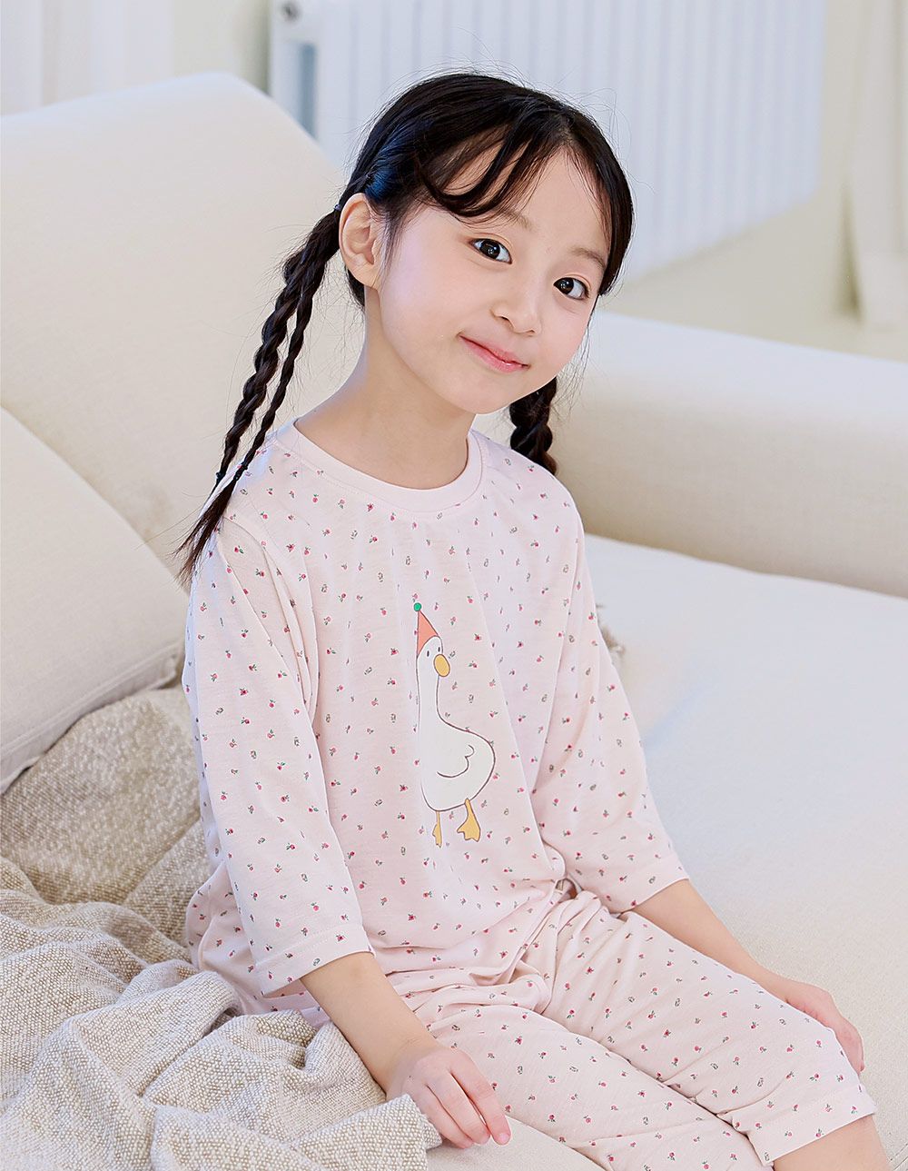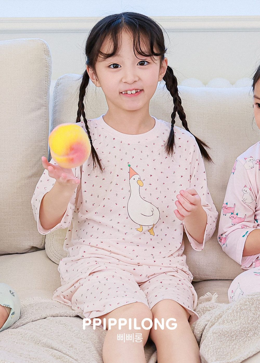 韓國 Ppippilong - 清涼嫘縈透氣7分袖家居服/睡衣-尖帽鴨鴨-粉