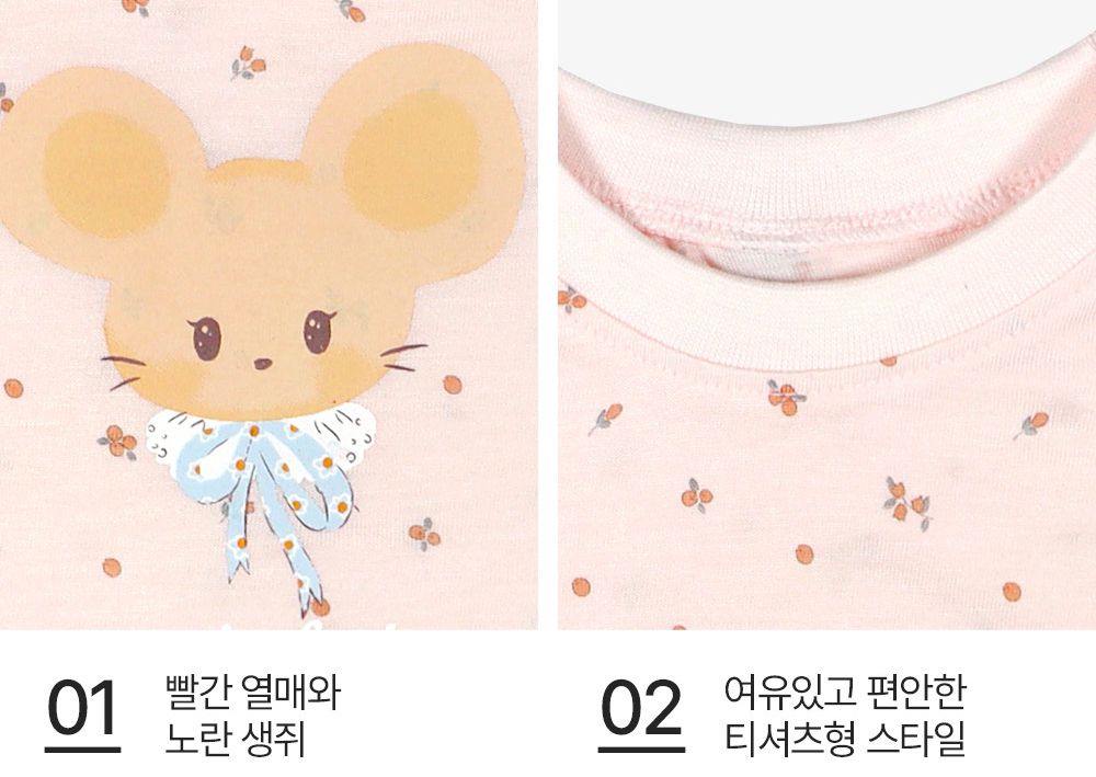 韓國 Ppippilong - 清涼嫘縈透氣7分袖家居服/睡衣-萌萌老鼠-粉
