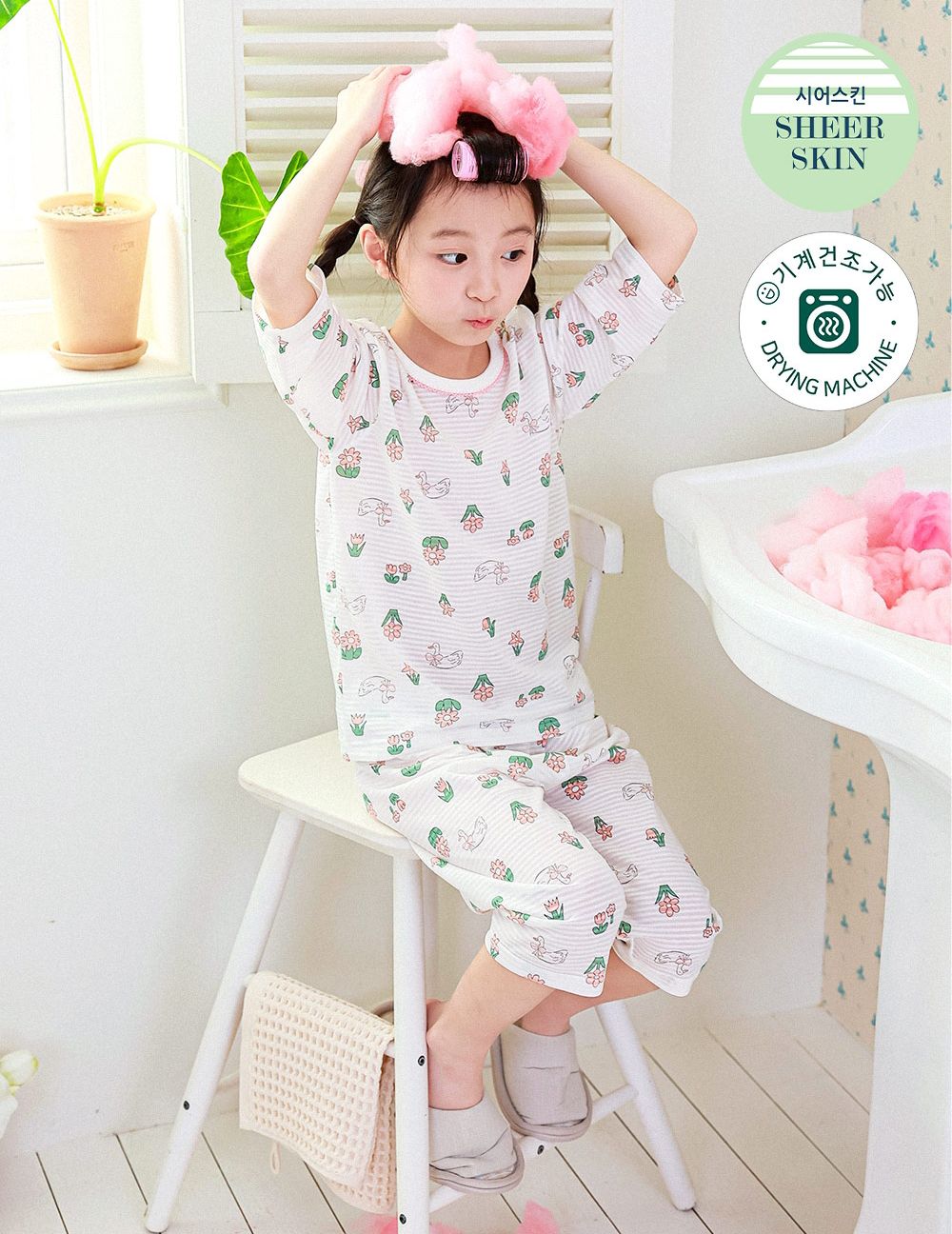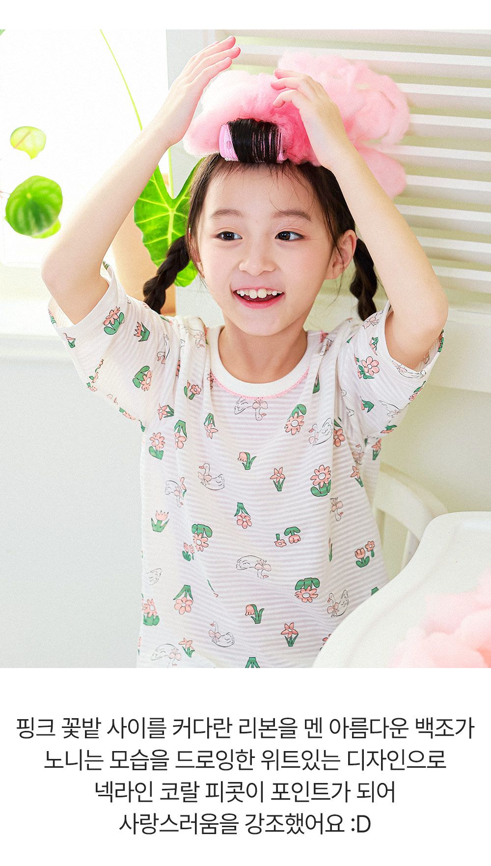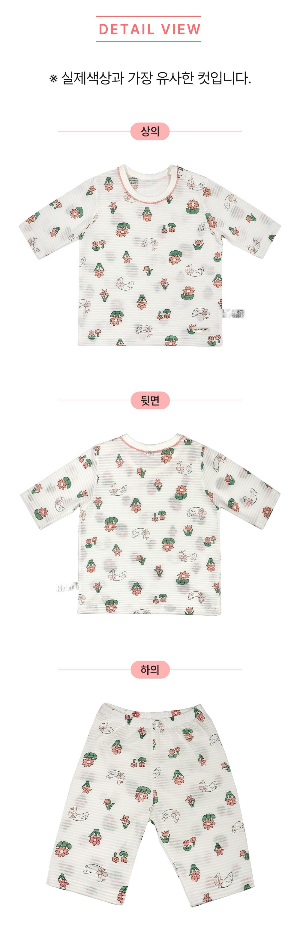 韓國 Ppippilong - 舒透提花7分袖家居服/睡衣-花朵天鵝-象牙白