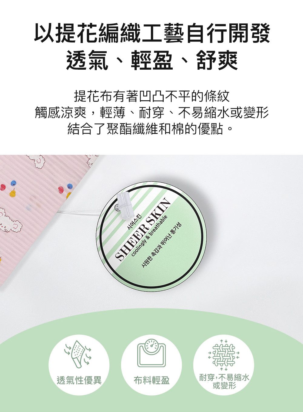 • 提花布輕盈、柔軟、涼爽不悶熱