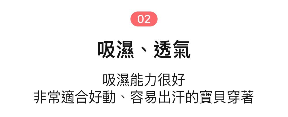 • 吸濕、透氣,適合好動易出汗寶貝穿著