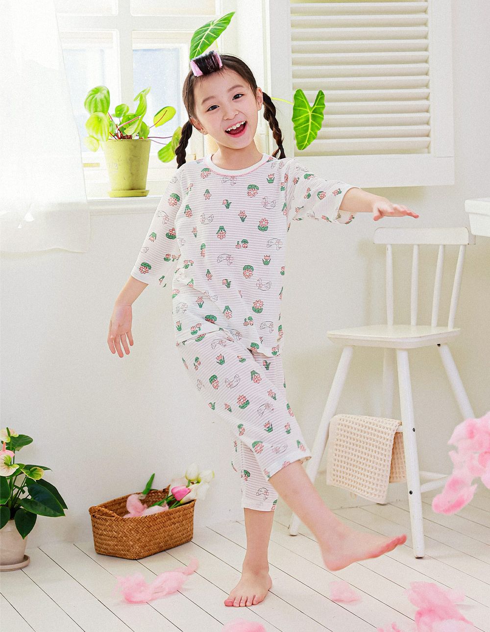 韓國 Ppippilong - 舒透提花7分袖家居服/睡衣